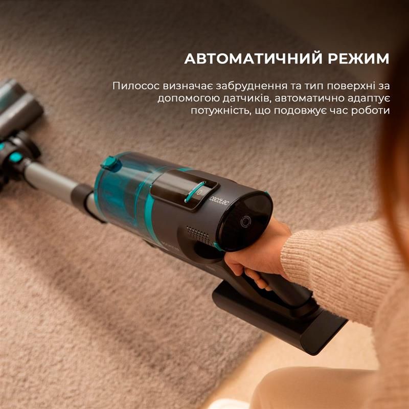 Пилосос визначає бруд та тип поверхні за допомогою датчиків, автоматично адаптує потужність, збільшує автономність та ефективно видаляє забруднення.