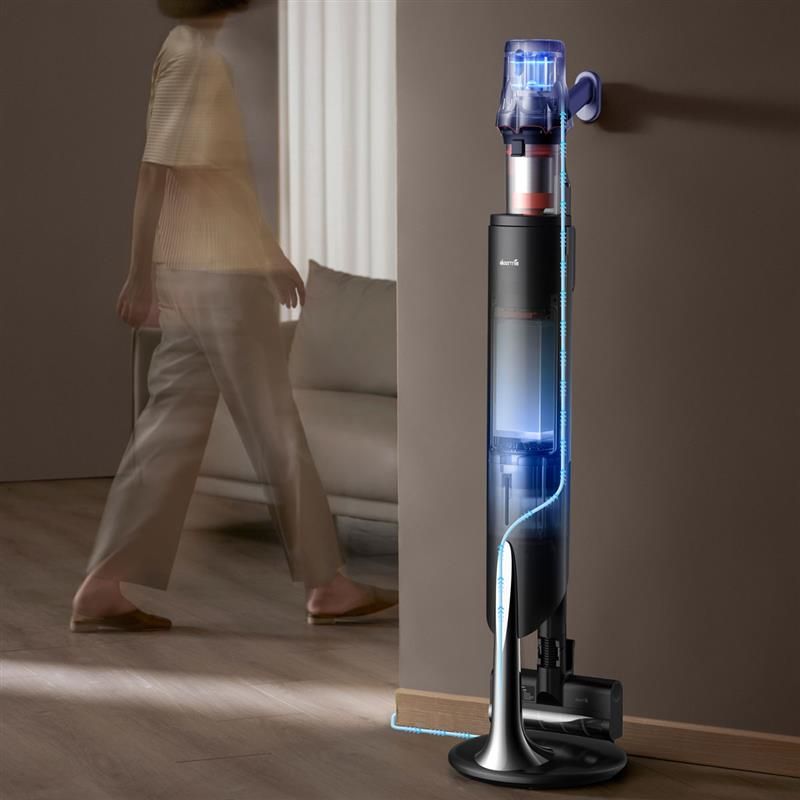Вертикальна станція підлогою потужністю 1000 Вт, легко і швидко очистить пилозбірник пилососа. Просто встановіть пилосос на станцію після збирання, і вона автоматично очистить пилозбірник об’єм 0,56 л і перемістить сміття у змінний мішок станції об’єм 1,8 л. Крім автоматичного очищення пилозбірника, станція також заряджає пилосос, заощаджуючи ваш час та сили.
