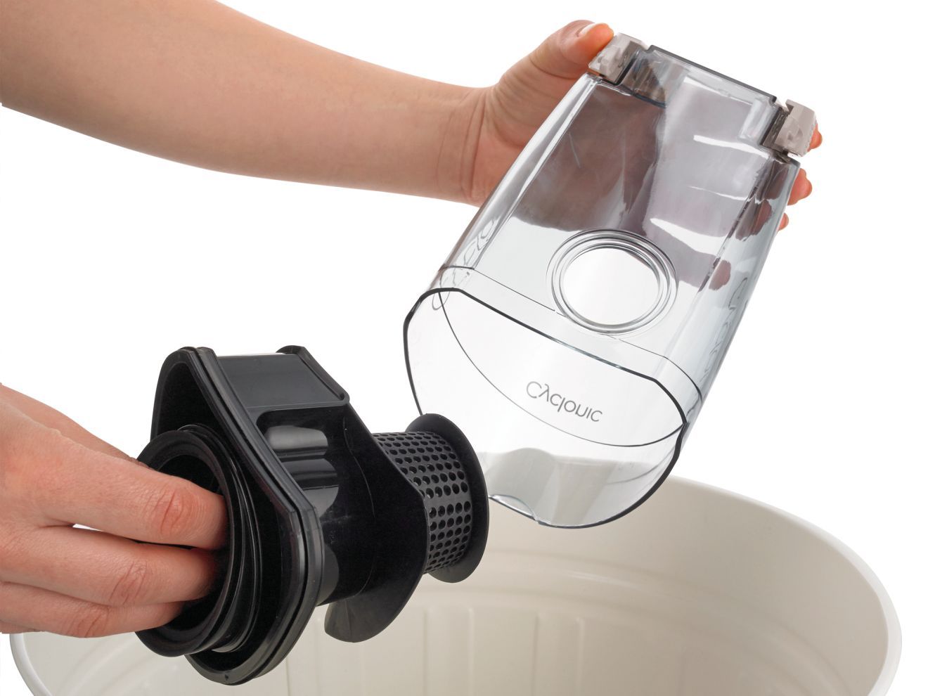 Контейнер для пилу легко очистити. Одним рухом вичавіть ручку фільтра, витягніть його і витрусіть пил з контейнера.