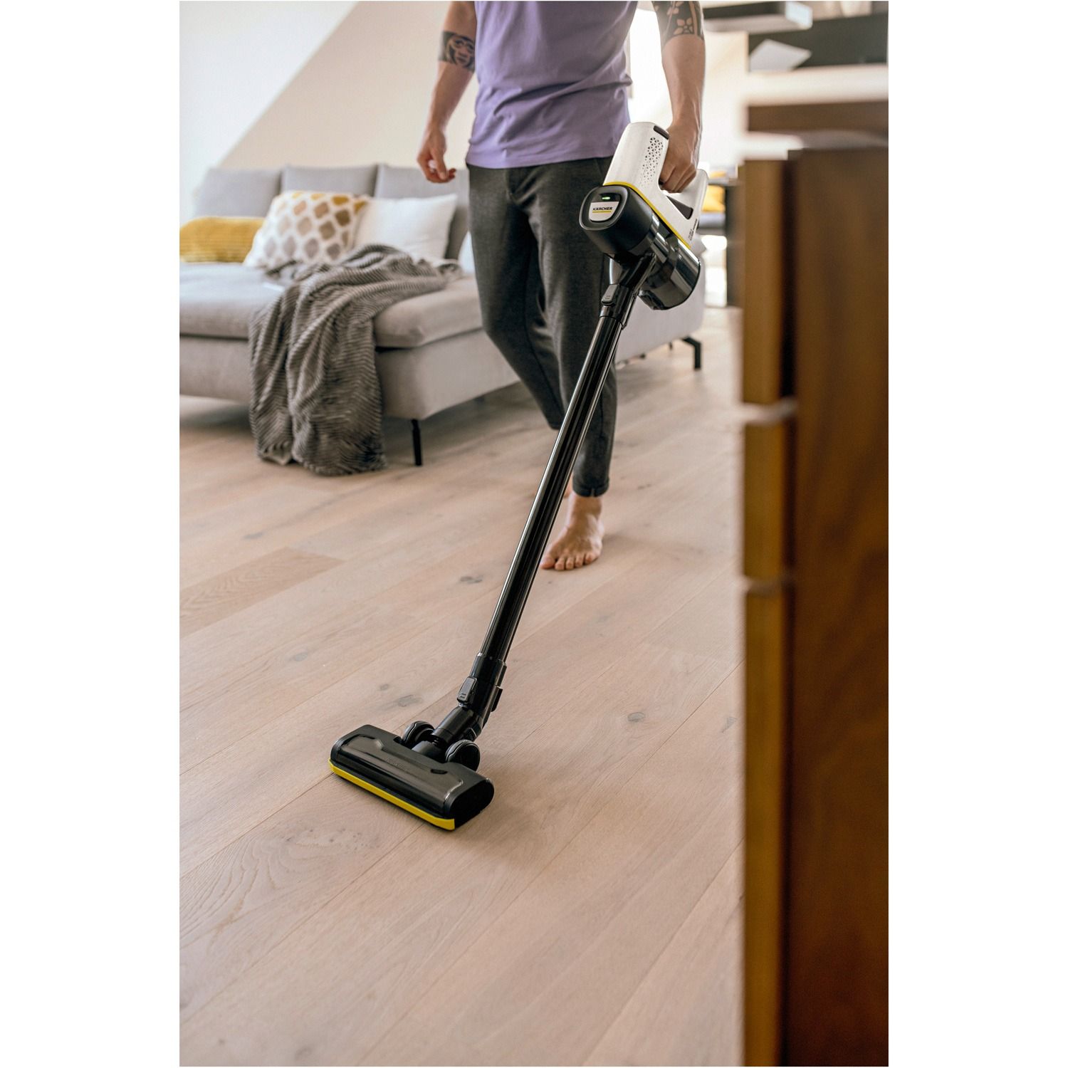 Максимум комфорту і повна свобода рухів: бездротовий пилосос VC 4 Cordless myHome, що працює до 30 хвилин від одного заряду акумулятора, є чудовою альтернативою підлоговому пилососу, який необхідно тягнути за собою.