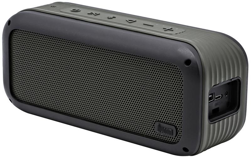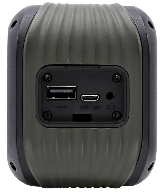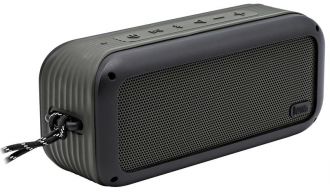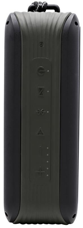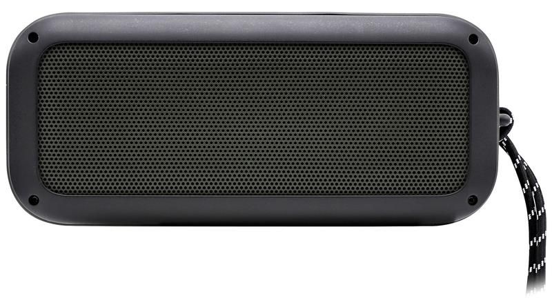 Конструкція корпусу відповідає коефіцієнту водозахисту IPX5: бризки дощу, водойми або басейну не завдадуть шкоди техніці. Будова з використанням металевої основи і гумового захисту стала запорукою міцності. Ремінець для наручного носіння дозволить взяти акустику з собою, а стійка основа – розташувати на будь-якій площині.