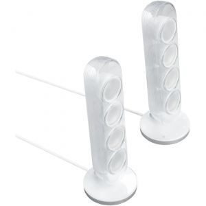Трисмугова акустична система SoundSticks 5 створює докладне, чисте та об’ємне стереозвучання. Сабвуфер, спрямований вниз, забезпечує потужні та точні баси. Два твіттери з шовковим куполом та динаміки середніх частот відтворюють голос та інструменти з ідеальною точністю.