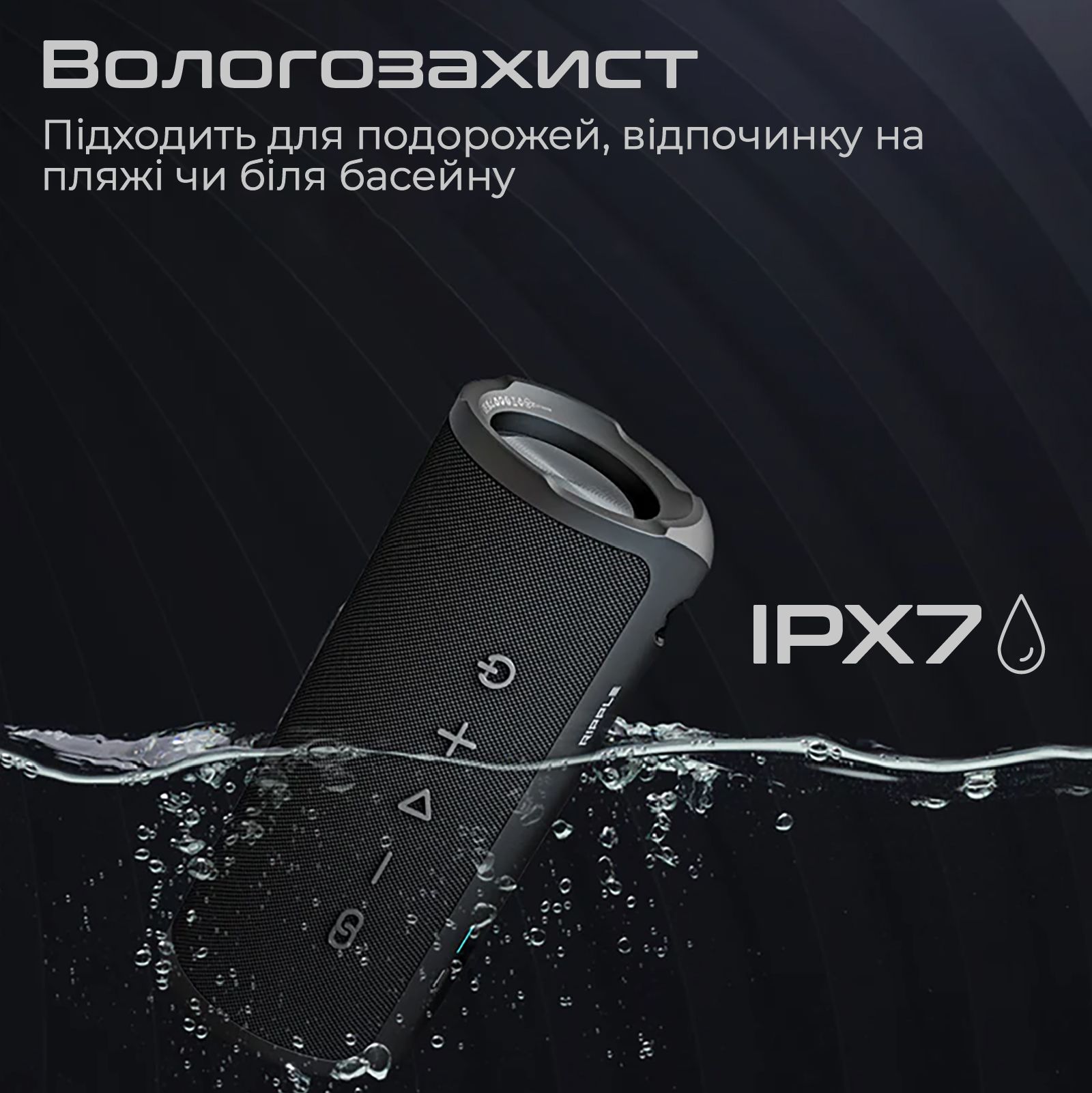 Вологозахист IPX7: Колонка надійно захищена від пилу та дощу, за рахунок чого відмінно підходить для подорожей, відпочинку на природі, на пляжі або біля басейну.