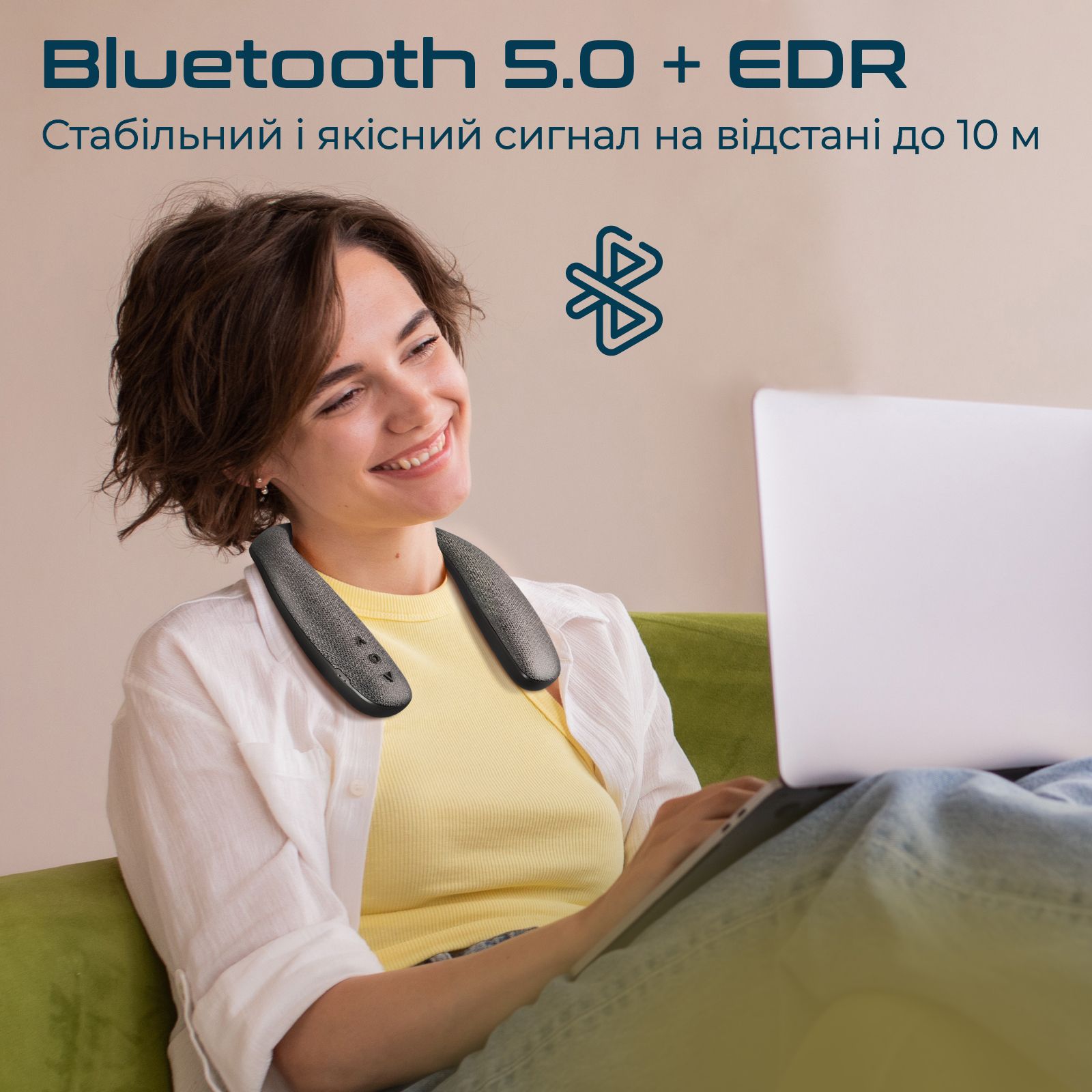 - Bluetooth 5.0 + EDR: Завжди стабільний і якісний сигнал без переривань і відставань звуку потокових відео з радіусом дії до 10 м