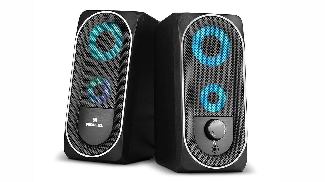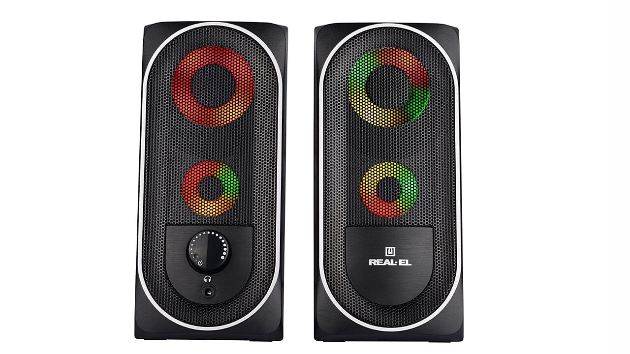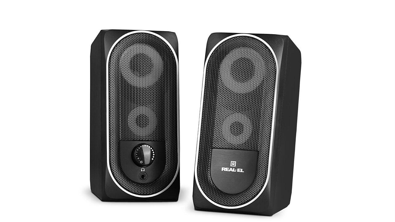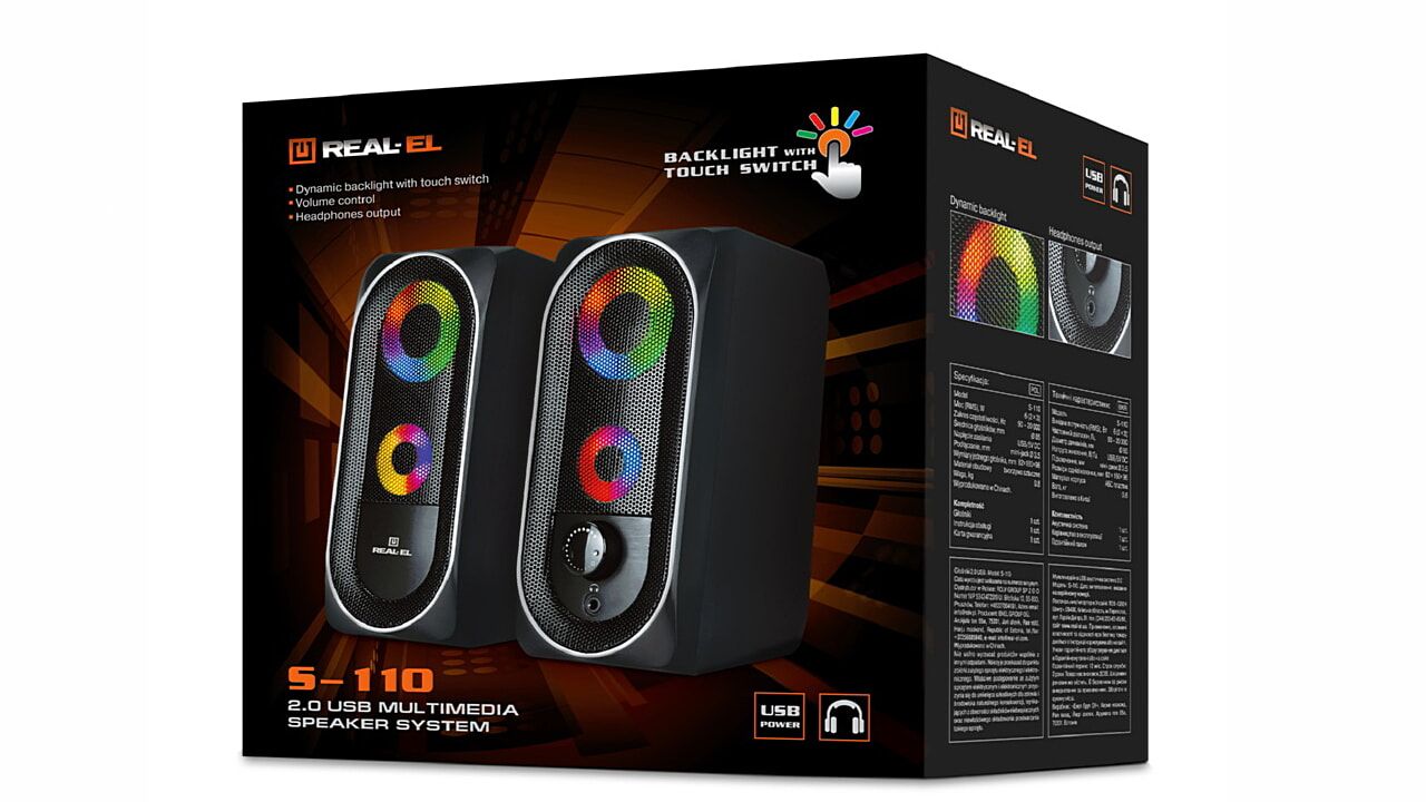 Мультимедійна акустична система REAL-EL S-110 – легке й доступне вирішення питання озвучування комп"ютера (ноутбука). АС оснащена вмонтованими підсилювачем, акустичним та сигнальним кабелями, завдяки чому може бути підключена практично до будь-яких джерел аудіосигналу. Живлення АС здійснюється через USB-порт ПК, ноутбука або блок 5V DC за допомогою вмонтованого USB-кабелю живлення.