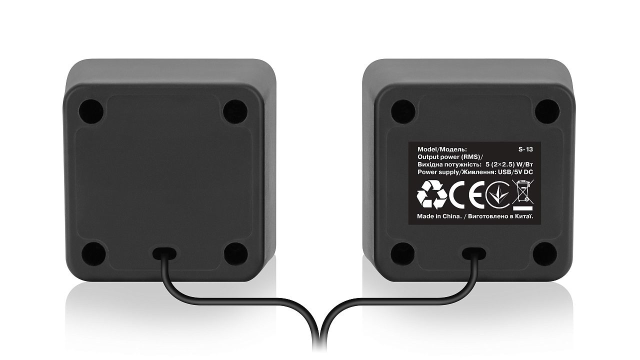 REAL-EL S-13 – компактне та просте рішення для щоденного використання. Мультимедійна USB-акустична система REAL-EL S-13 – це легке та доступне рішення для відтворення звуку з комп’ютера чи ноутбука. Завдяки компактному дизайну колонки займають мінімум місця та ідеально підходять для невеликих робочих столів.