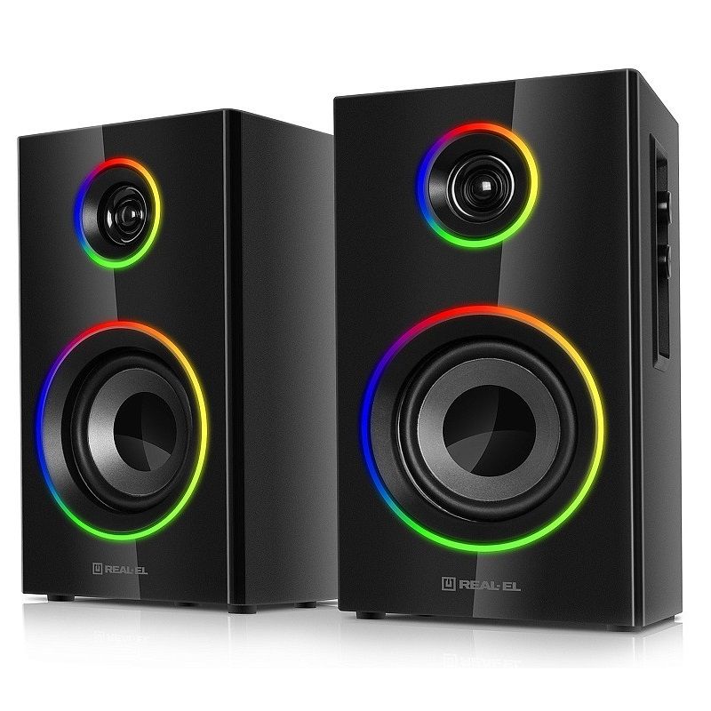 Функція вибору кольору RGB підсвічування в динамічному або статичному режимі дозволяє створювати унікальну неповторну атмосферу. Лакована передня панель підкреслює стильний дизайн системи. REAL-EL S-415 — це гармонійне поєднання якісного звуку та естетики, яке доповнить будь-який інтер’єр.