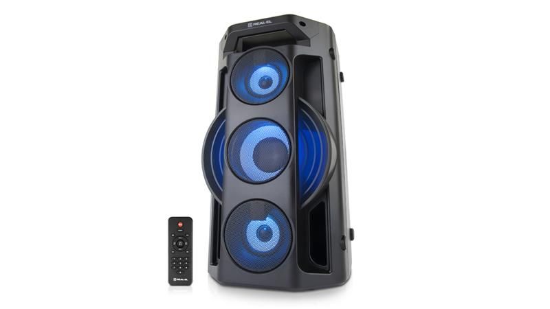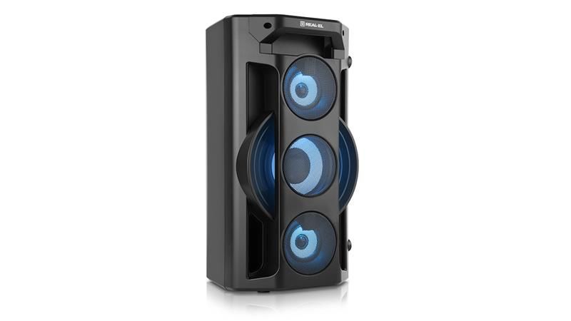 Мультимедійна портативна акустична система REAL-EL X-777 має сучасний дизайн та якісне звучання. Широкий функціонал "бумбокса" дозволяє прослуховувати музику підключаючи мобільний пристрій, ПК, TV, ноутбуки і т. п., як через вивід AUX, так і по Bluetooth. USB і Micro SD card роз'єми дають можливість прослуховувати аудіо-файли з flash носіїв. X-777 відмінний супутник для відпочинку на природі, літій-іонний акумулятор на 8800 mAh забезпечить вас музикою на вельми тривалий час.