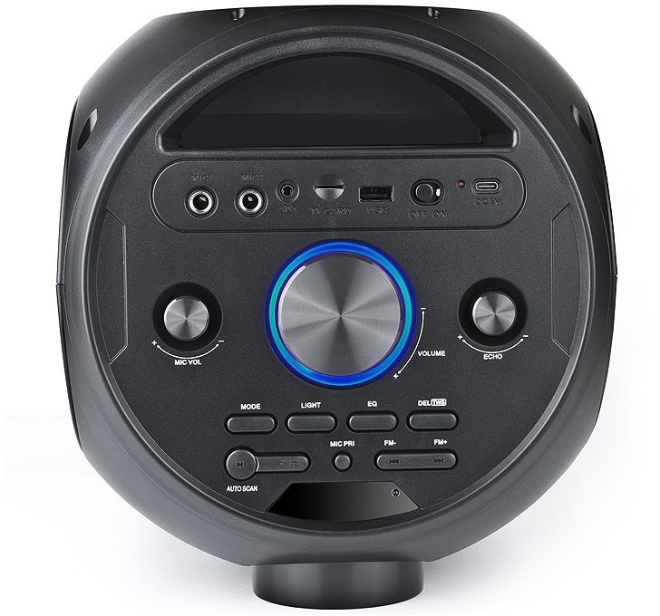 REAL-EL X-787 відмінний супутник для відпочинку на відкритій місцевості, два потужних літій-іонних акумулятора на 4400 мАг забезпечать Вас музикою на вельми тривалий час. Функція KARAOKE приємно здивує любителів співу, адже дана модель має можливість підключення відразу двох мікрофонів з регулюванням ехо.