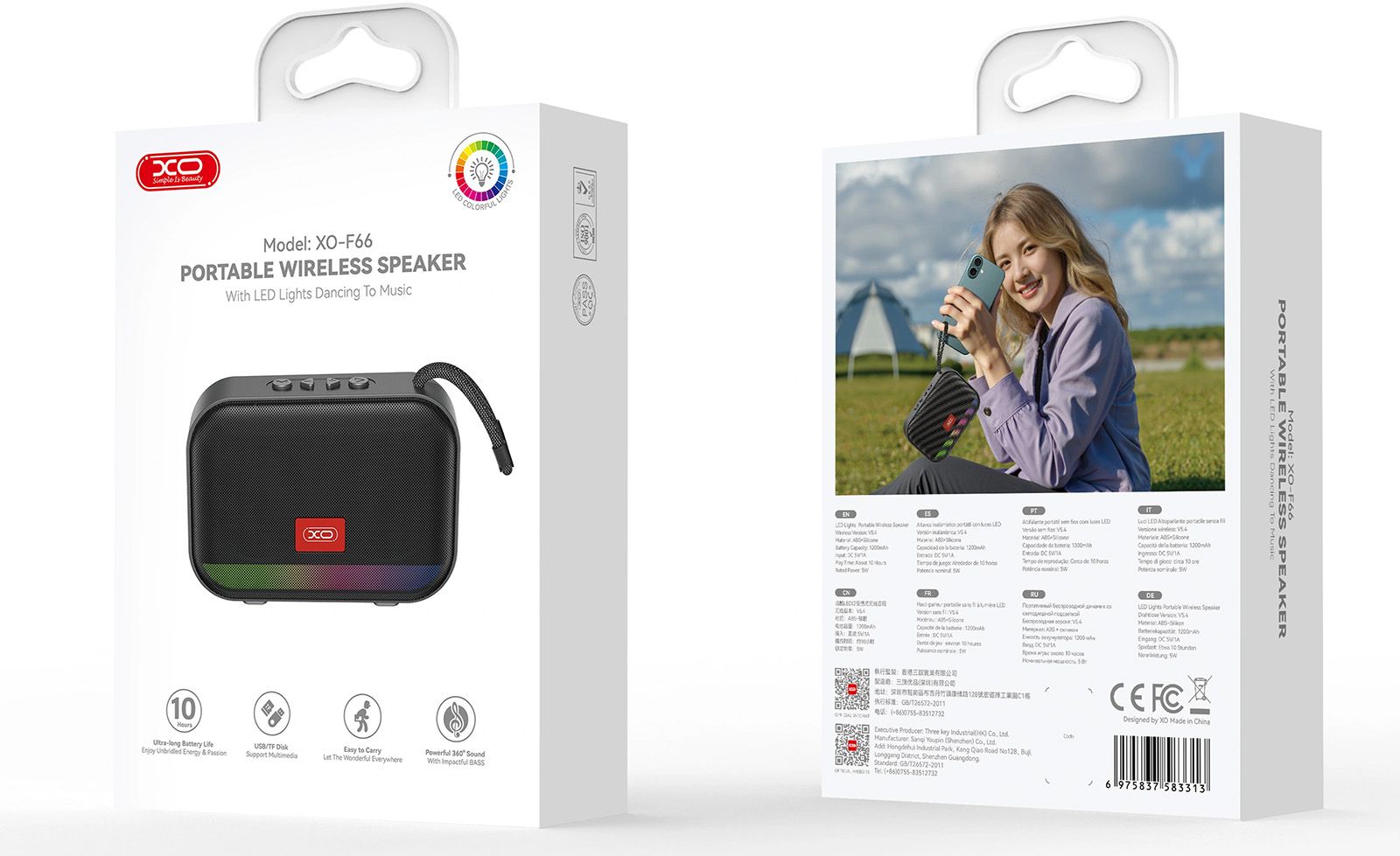 ХО F66 - маленька та легка колонка з потужністю 5 Вт, яка вражає об’ємним звучанням та компактним розміром.