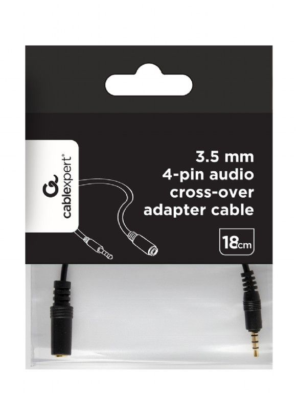Аудіо-кабель Gembird CCA-419 3.5 мм - 3.5 мм (M/F), кросовер контактів GND і MIC, 0.18 м, чорний
