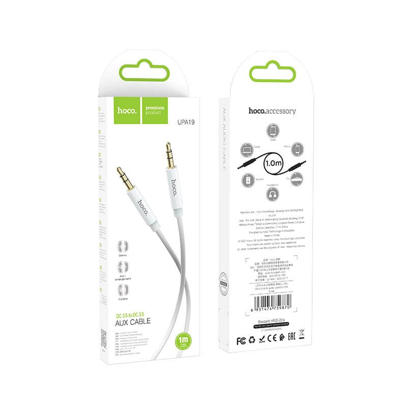 Кабель Aux Hoco UPA19 це ідеальне поєднання високої якості, ергономічності та ціни. Модель поставляється в надійній брендовій упаковці, представлена двома стильними колірними рішеннями. Даний кабель створений для перетворення цифрового звуку в аналоговий, наприклад, під’єднання смартфона, комп’ютера або телевізора до колонок, навушників або FM трансмітера в автомобілі. Завдяки потовщеному трижильному сердечнику, що складається з 48 провідників, і якісному екрануванню аксесуар здатний забезпечити оригінальне звучання без будь-яких спотворень і сторонніх шумів. Корпуси роз’ємів кабелю виготовлено з термопластичного каучуку, зовнішнє обплетення, що має плетену структуру, виконано з міцного нейлону, а провідники - з чистої безкисневої міді. Встановлення з’єднання між пристроями здійснюється через mini-Jack 3.5мм - mini-Jack 3.5мм. Довжина кабелю становить 1м. Продукція бренду Hoco поєднує функціональне розмаїття та винятковий дизайн у кожному товарі свого асортименту.