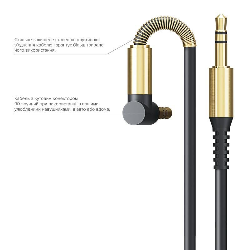 Кабель з кутовим конектором 90 зручний при використанні, в авто або вдома. Стильне захищене сталевою пружиною з"єднання кабелю, гарантує більш тривале його використання.