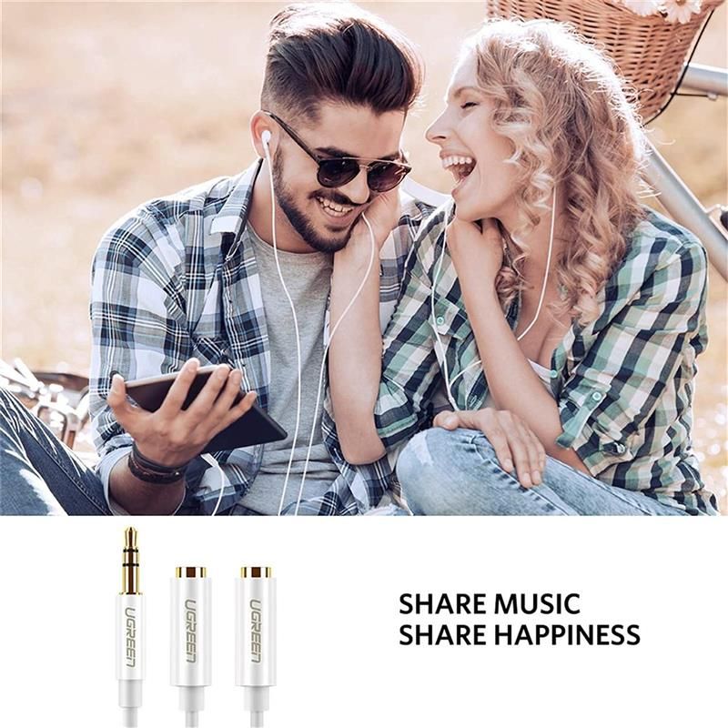 Він перетворює один аудіопорт на два аудіопорти. Цей кабель-розгалужувач дає змогу використовувати 2 навушники одночасно. Ви можете легко поділитися музикою з друзями/сім’єю без перешкод.