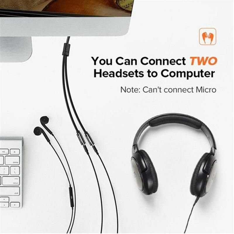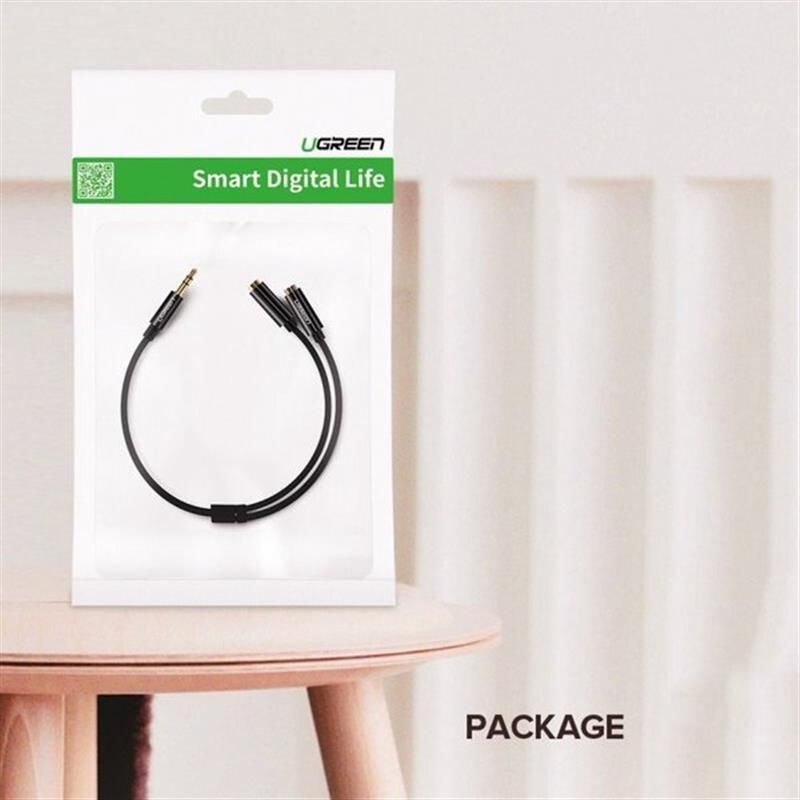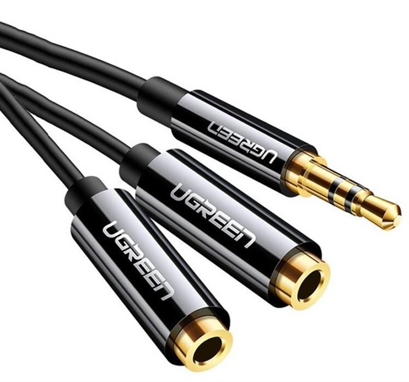 Аудіо-кабель Ugreen AV134 3.5 мм - 2х3.5 мм (M/F), 0.2 м, чорний (UGR-20816)