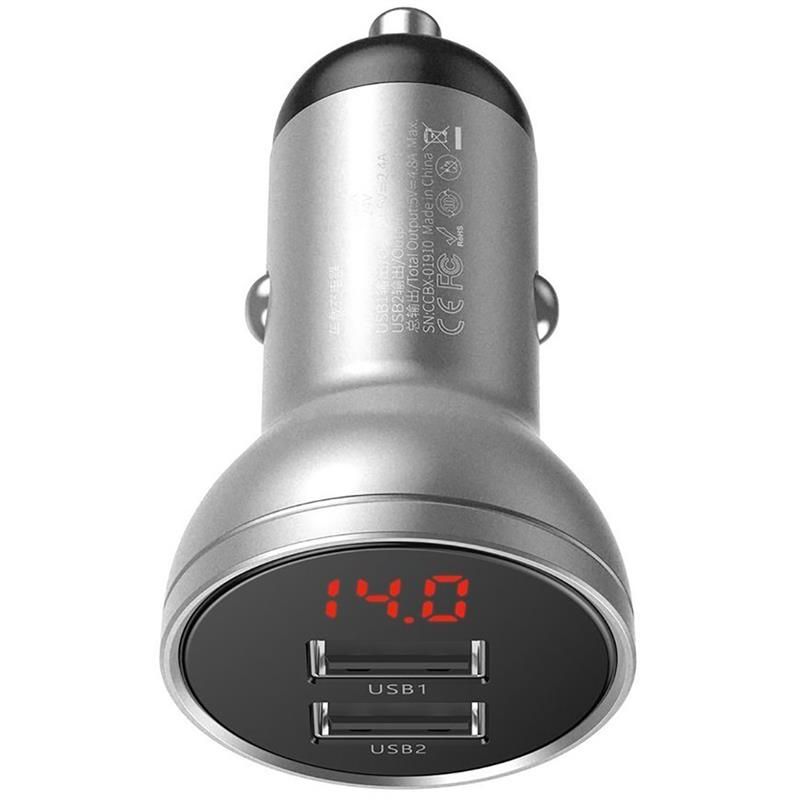 Автомобільний зарядний пристрій Baseus Digital Display (2хUSB, 4.8A) Silver (CCBX-0S)