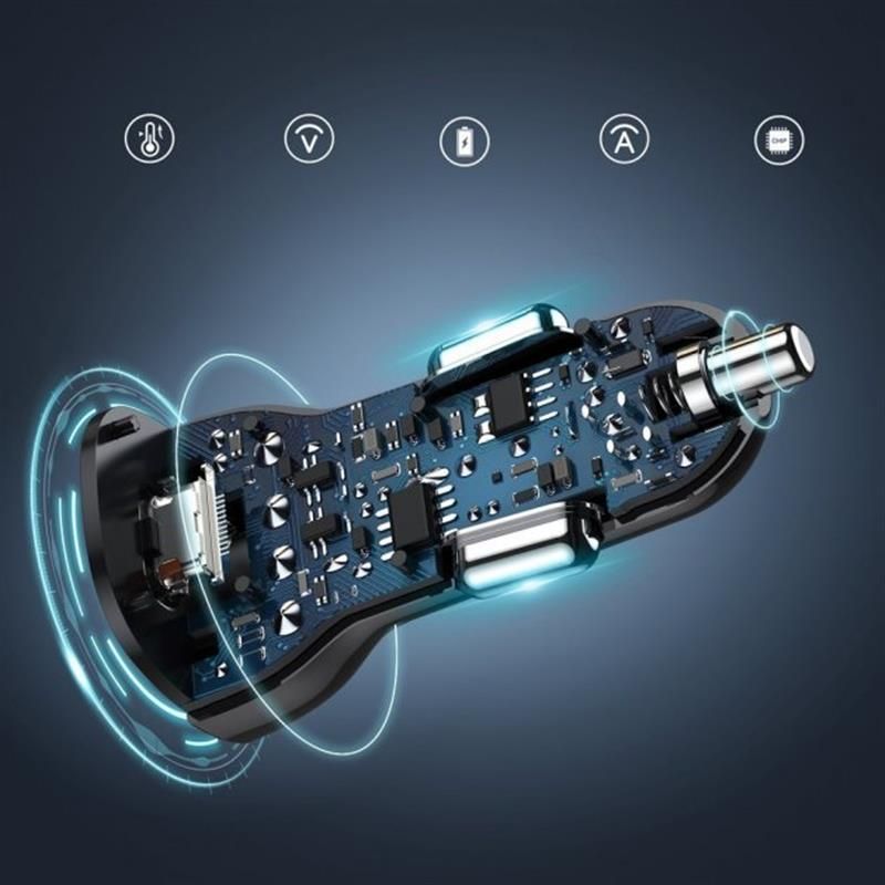 Зарядний пристрій Choetech TC0005 з вихідною потужністю 38 Вт забезпечує дуже швидку зарядку. Використовуючи порт USB Type-C, ви можете наполовину зарядити акумулятор свого пристрою всього за 45 хвилин. Це майже в 3 рази швидше передачі енергії, ніж у стандартних зарядних пристроях, які використовуються в автомобілях. Незважаючи на таку високу потужність, вам не доведеться турбуватися про безпеку – розподіл живлення оптимально керується внутрішньою мікросхемою.