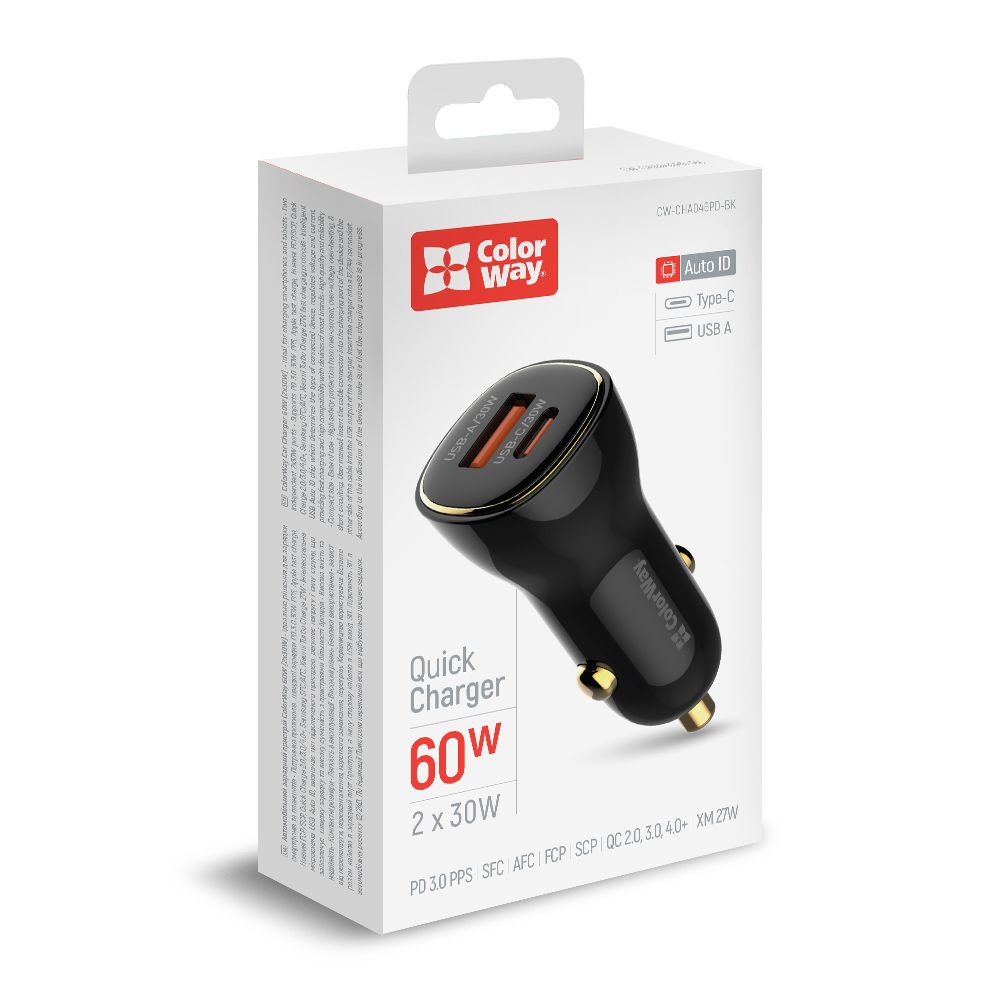 Автомобільний зарядний пристрій ColorWay Power Delivery Port PPS USB (USB-A + USB-C, 60W) Black (CW-CHA046PD-BK)