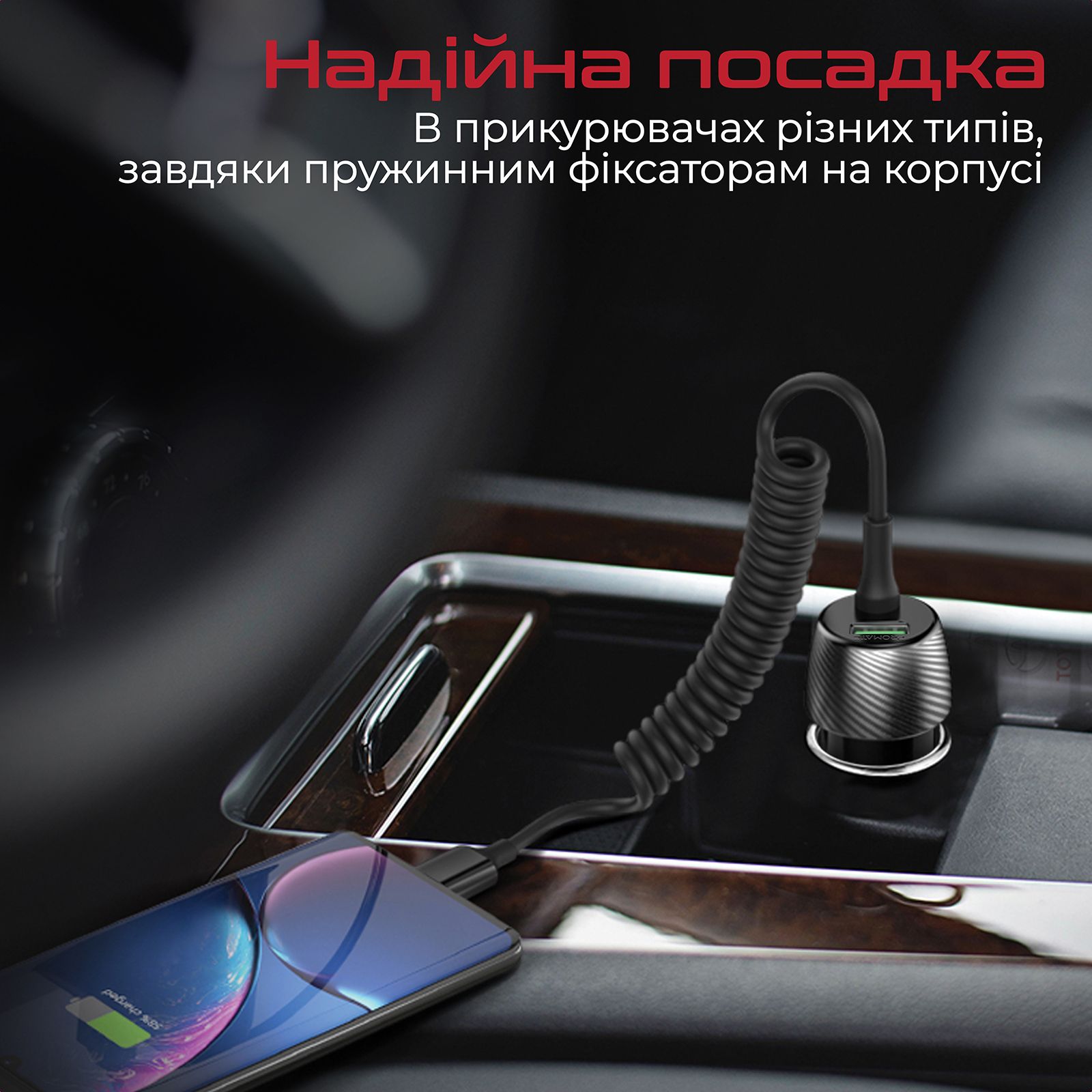 Promate PowerDrive-33PDC - ідеальне рішення для швидкої та ефективної зарядки твоїх пристроїв у машині. А вбудований спіральний кабель оптимізує простір в авто та позбавить необхідності купівлі додаткового дроту.