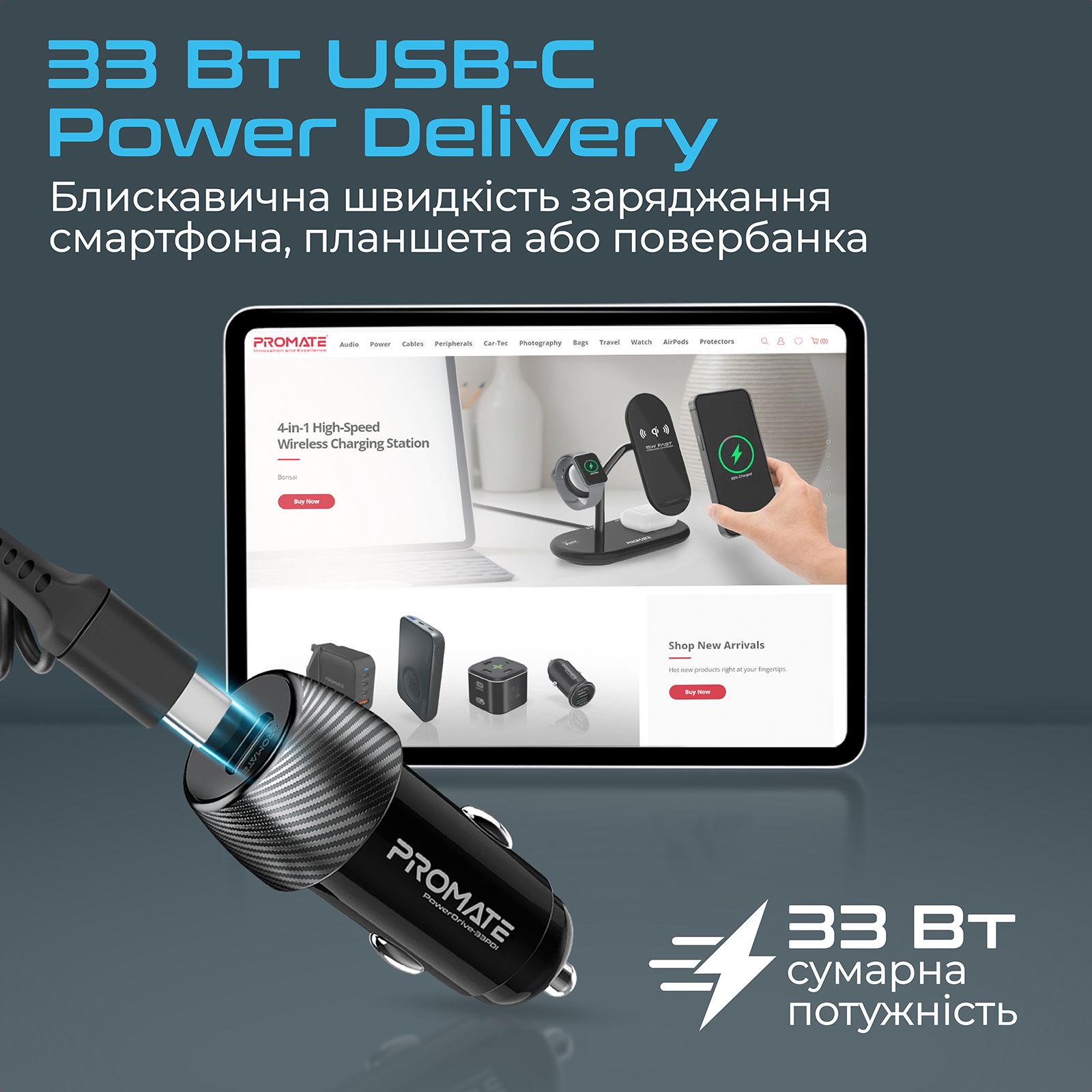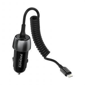 Promate PowerDrive-33PDI - ідеальне рішення для швидкого та ефективного заряджання твоїх пристроїв у машині. А вбудований спіральний кабель відмінно впорається з технікою Apple, оптимізує простір в авто та позбавить від необхідності купівлі додаткового дроту.