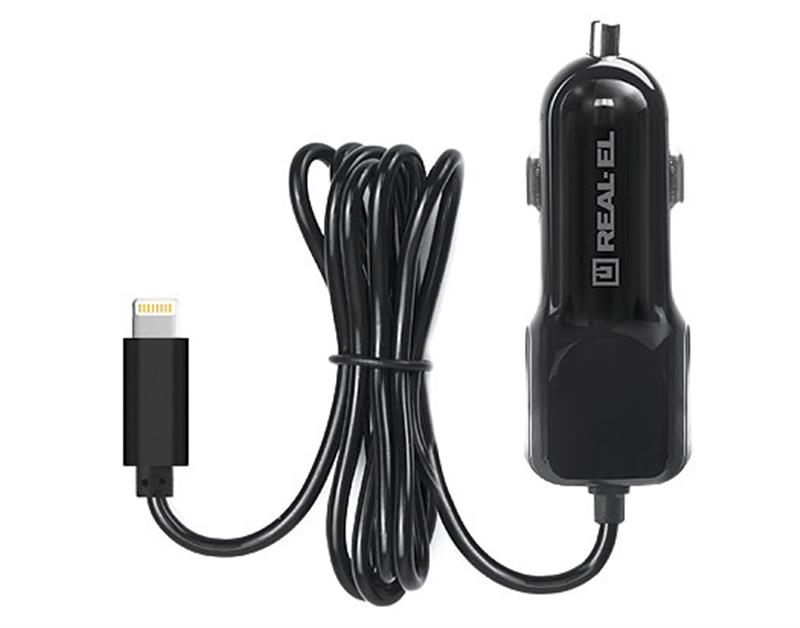 Автомобільний зарядний пристрій REAL-EL CA-17 (2USB, 2.1A) Black + кабель Lightning