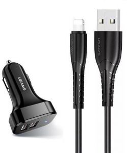 Автомобільний зарядний пристрій Usams U35 (2xUSB, 2.1A) Black (6958444985961) + кабель Lightning