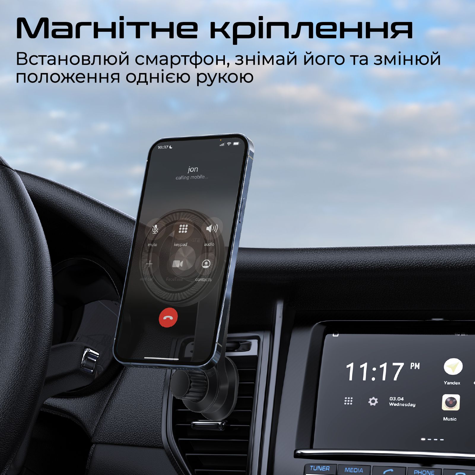 - Магнітне кріплення: Встановлюй смартфон на тримач, знімай його та змінюй вертикальне положення на горизонтальне однією рукою