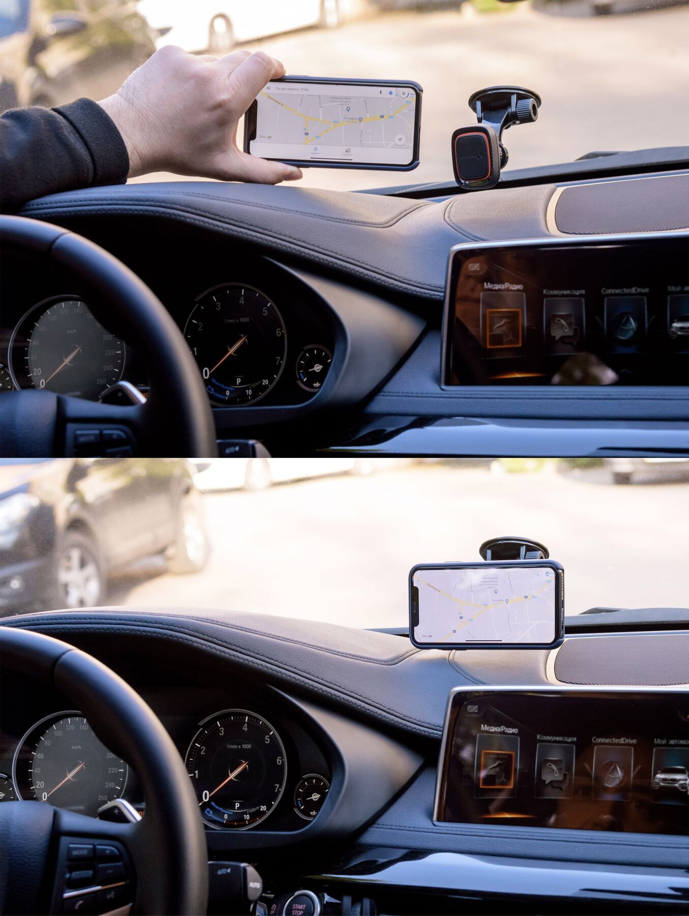 Простота у використанні: встановіть пластину на задній панелі смартфона і помістіть його на магнітний тримач;