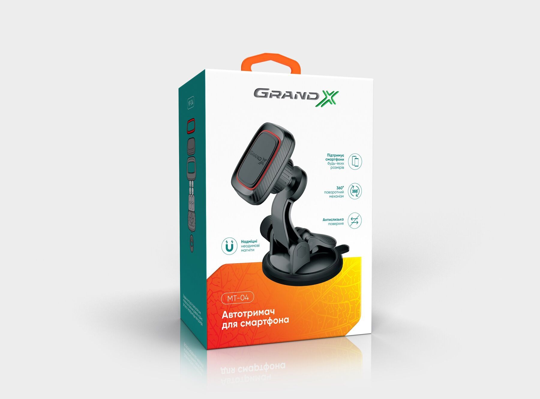 Простий в установці та користуванні, автомобільний тримач Grand-X МТ-04 підійде для смартфонів будь-яких розмірів. Універсальність кріплення дозволяє використовувати даний держатель практично в будь-якому автомобілі. У автомобільному тримачі Grand-X MT-04 передбачена можливість змінювати кут нахилу самого тримача в широкому діапазоні, що дозволяє користувачеві розмістити його максимально зручно. Одним рухом руки Ви можете легко змінювати положення смартфона з вертикального на горизонтальне і назад, а потужні неодимові магніти надійно тримають смартфон на всіх поворотах і нерівностях дороги. Від аналогів за ціною Grand-X MT-04 вигідно відрізняється якістю, а від аналогів за якістю - вигідною ціною!