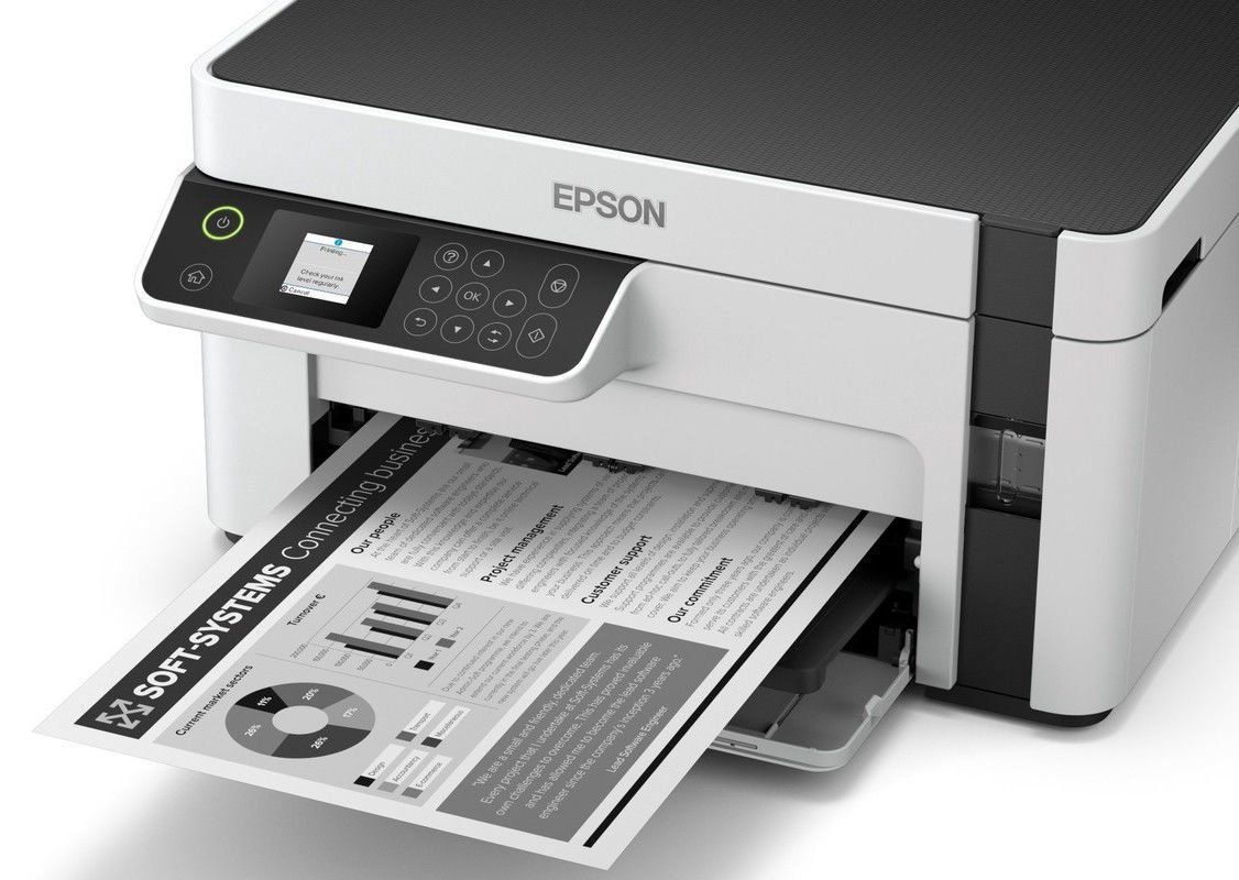 Epson M2120 - цей компактний монохромний пристрій 3 в 1 (принтер-сканер-копір) з підтримкою підключення по Wi-Fi і Wi-Fi Direct.