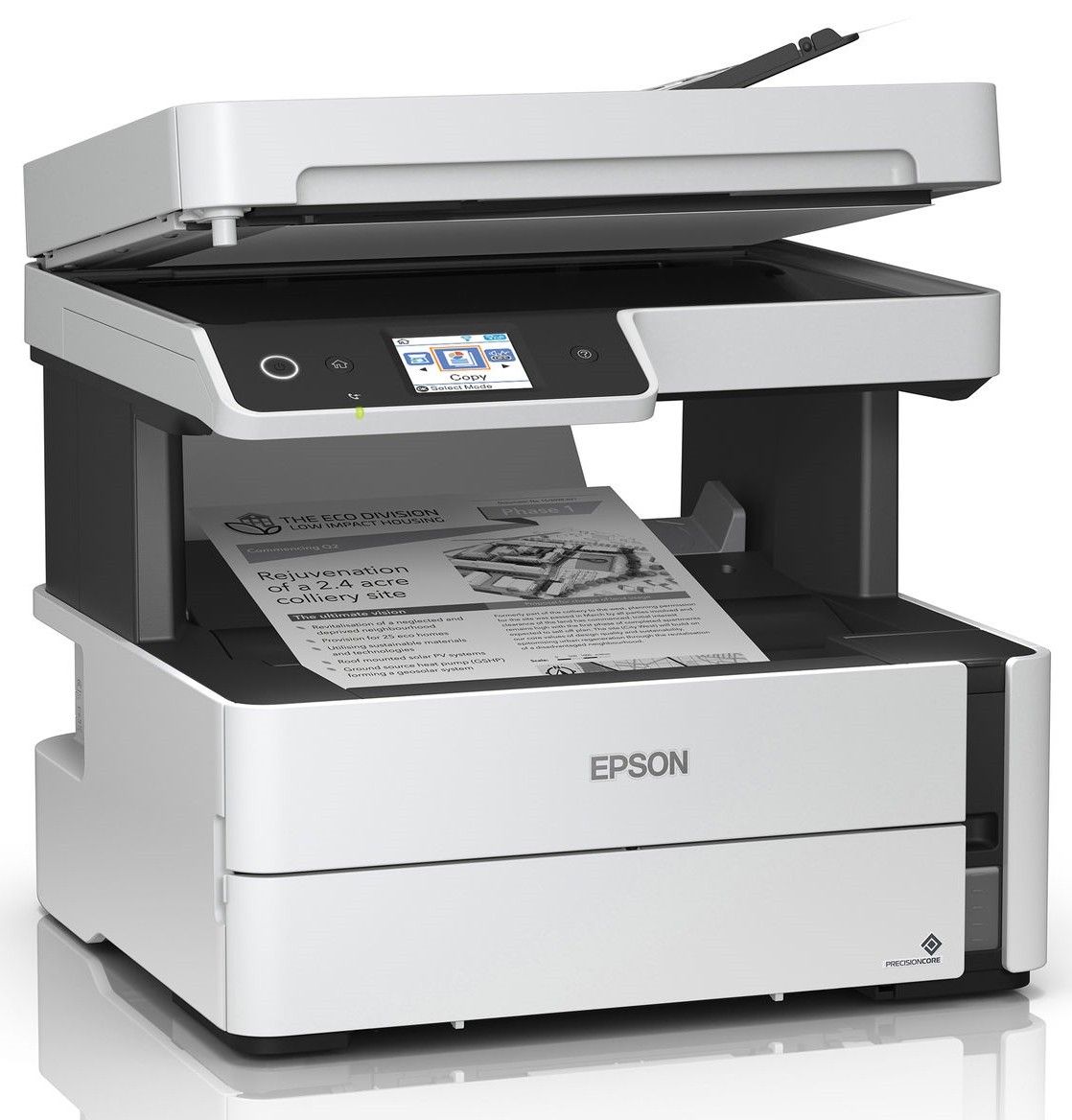 Epson М3170 - це Принтер-сканер-копир-факс серії "Монохромна Фабрика друку Epson". Завдяки своїй унікальній конструкції Фабрика друку Epson M3170 дозволяє друкувати документи з рекордно низькою собівартість, а за рахунок використання пігментного чорнила відбитки миттєво висихають і не розмазуватися при попаданні води або механічній дії. Крім того цей пристрій має широкі можливості безпровідного підключення, а також функцію автоматичного двостороннього друку.