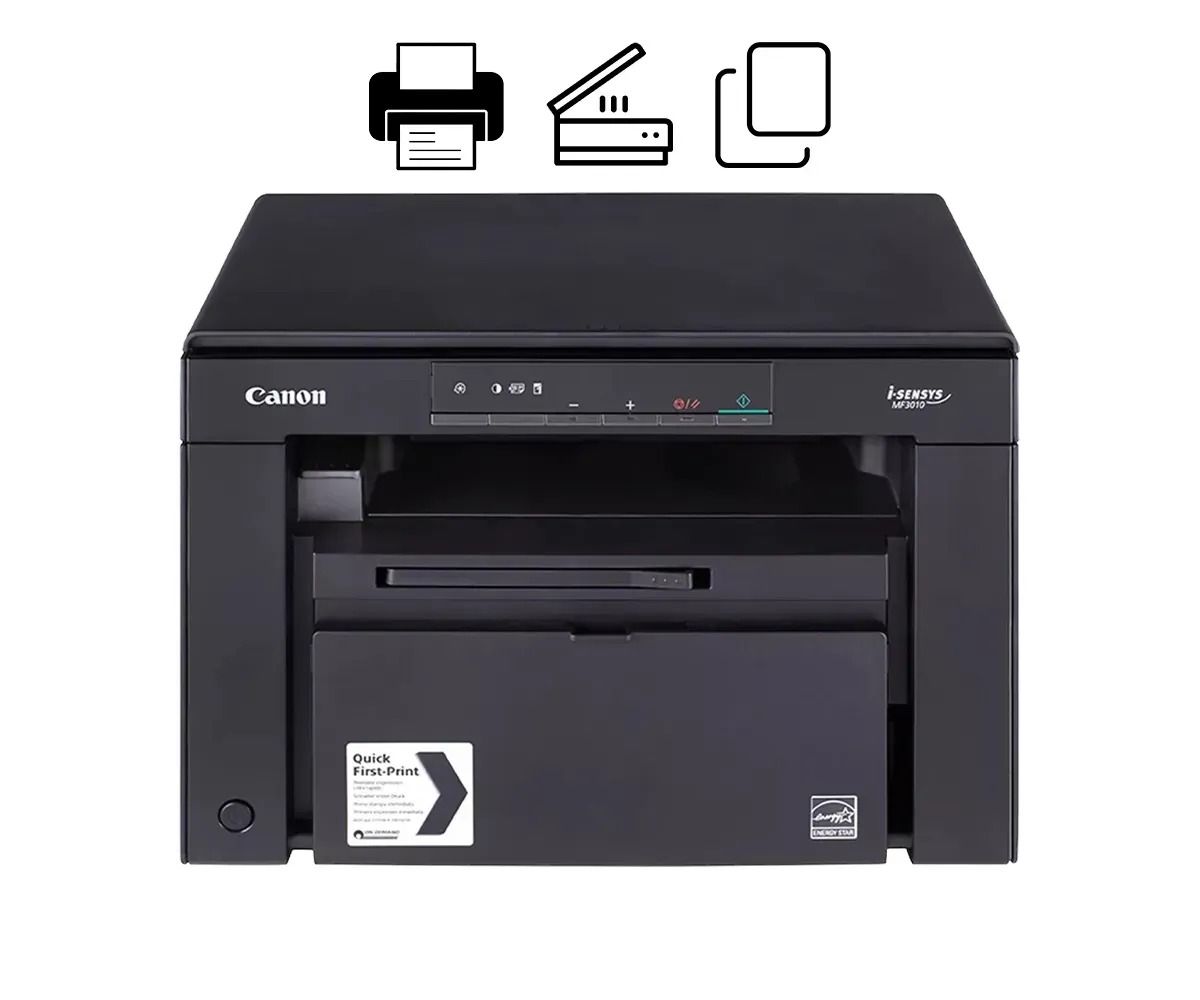 Елегантний і стильний, повністю чорний корпус MF3010 замикає інтелектуальний багатофункціональний лазерний пристрій «3 в 1». Високоякісний монохромний принтер, сканер і копір в одному компактному корпусі. Швидкий та економний, цей ефектний пристрій легко вміщається на столі. Він ідеальний для персонального використання або невеликих і домашніх офісів, де потрібен не тільки принтер, але також і економія часу та грошей.