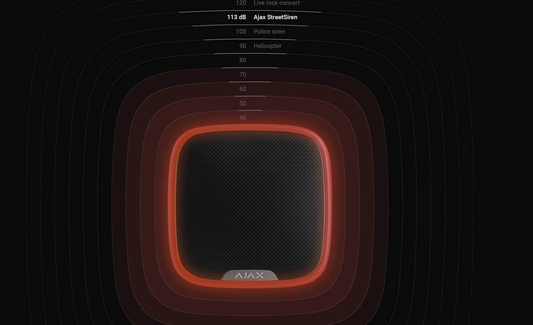 StreetSiren - бездротова вулична сирена з потужністю до 113 дБ. До системи безпеки Ajax підключається по захищеному протоколу Jeweller, дальність зв"язку - до 1500 метрів при відсутності перешкод. Оснащена яскравими світлодіодами, може працювати від блоку живлення або до 5 років від батарей.