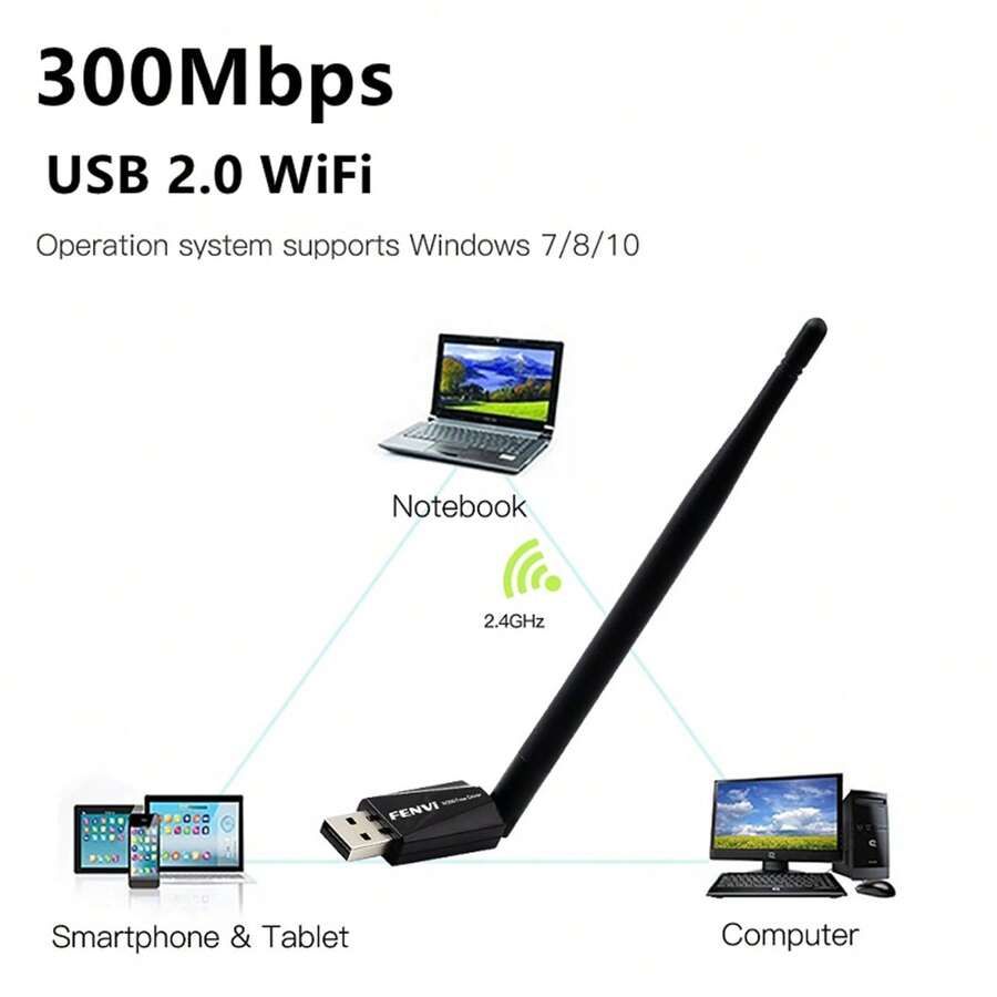 USB-адаптер бездротової локальної мережі F-N300U з антеною великого радіусу дії 6 дБ з високим коефіцієнтом посилення дає вам невеликий спосіб отримати швидке з'єднання Wi-Fi наступного покоління: підключивши його до інтерфейсу USB 2.0 вашого ПК, ноутбука або Mac, ви можете встановити з'єднання . при з'єднанні зі швидкістю 150 Мбіт/с на частоті 2,4 ГГц з вашим Wi-Fi-маршрутизатором. Ви можете переключатися між 2. Діапазони Wi-Fi 4 ГГц дозволяють уникнути перешкод і забезпечити оптимальне підключення до Інтернету через Wi-Fi для вашого ПК, ноутбука або Mac.