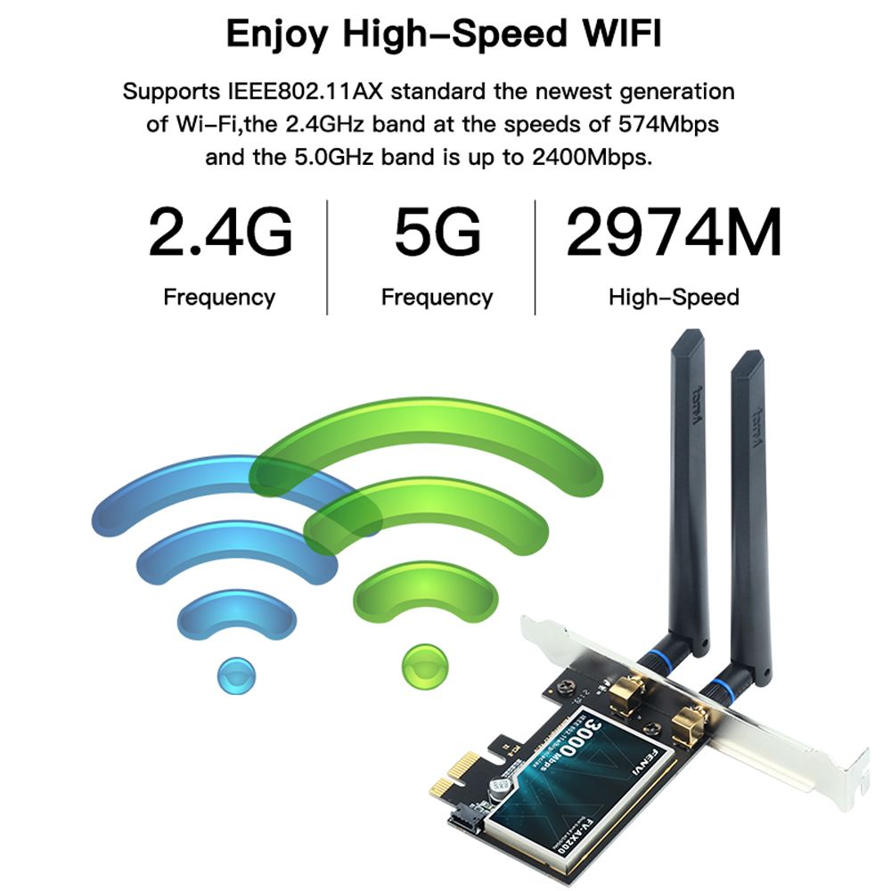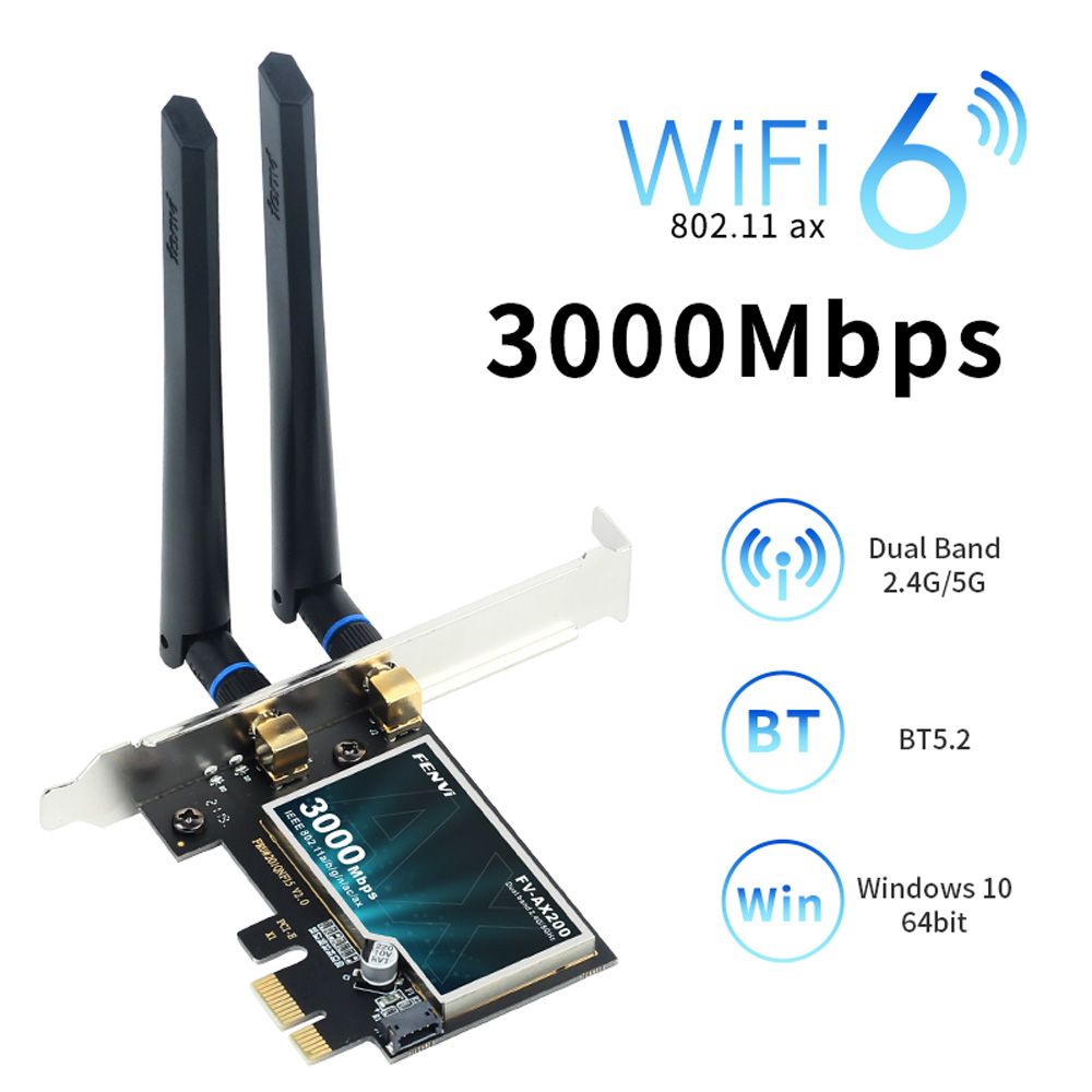 FENVI Wifi6 AX200 PCIe 2974 Мбіт/с Бездротовий адаптер Wi-Fi, дводіапазонний 2,4 ГГц/5 ГГц, сумісний BT 5.2 802.11AX MU-MIMO для Win10/11