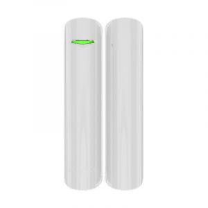 Бездротовий датчик Ajax DoorProtect призначений для детектування відкриття дверей і вікон. Датчик обладнаний клемної колодкою для підключення додаткових дротяних датчиків, в тому числі дротяних датчиків відкриття призначених для установки на металеві ворота і люки. Датчик складається з двох частин - магніту і блоку з герконом. Передбачено два варіанти магніту - для паралельної (великий магніт) і перпендикулярній (малий магніт) установки. Принцип роботи датчика відкриття заснований на властивостях геркона - елемента, здатного ставати провідником під впливом магнітного поля. У нормальному стані магніт і блок з герконом зімкнуті. Як тільки двері, на якій встановлений датчик, відкривається - магніт віддаляється від геркона, контакти розмикаються і геркон перестає проводити струм. При закритті дверей відбуваються зворотні процеси: магніт наближається до геркона, контакти замикаються і геркон починає проводити струм. В обох випадках датчик спрацьовує і миттєво відсилає повідомлення про тривогу на центральний блок. У датчику встановлений англійський геркон, яка не залипає і відпрацьовує понад мільйон замикань / розмикань. Ajax DoorProtect оснащений ефективною бездротовою системою радіозв"язку, яка використовує шифрування повідомлень і захист від підробки. Це забезпечує відмінну захищеність сигналізації від спроб злому зловмисниками. Крім того, датчик має ультрасучасну високонадійну систему зв"язку, що дозволяє йому успішно працювати в межах декількох поверхів бізнес-центру або на відстані до 2000 м на відкритій місцевості від центрального блоку сигналізації. Особливості: Легко встановлюється і налаштовується без спеціальних знань Передана інформація захищена від перехоплення і спроби підміни Максимальна відстань між датчиком і центральним блоком становить 2000 м в умовах прямої видимості Адаптивна регулювання потужності передачі, в залежності від відстані до центрального блоку, дозволяє витрачати менше енергії батареї Поріг спрацьовування датчика - 2 см Вимірює температуру навколишнього середовища і передає інформацію про поточну температурі Можливість підключення до клемної кол ДКЕ додаткових дротяних датчиків відкриття, призначених для використання на металевих дверях, люках Можливість вибору логіки роботи: бістабільний або імпульсний сигнал Захищений від розтину тампер Працює від батареї типу CR123A до 7 років Працює з приймачем бездротових сигналів Ajax ocBridge