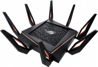 Тридіапазонний ігровий маршрутизатор стандарту WiFi 6: підтримка PS5, 4-ядерний процесор, порт стандарту 2.5G Ethernet, підтримка динамічного вибору частот DFS, геймерська платформа wtfast, адаптивна система QoS, підтримка mesh-технології AiMesh, інформаційна безпека AiProtection Pro.