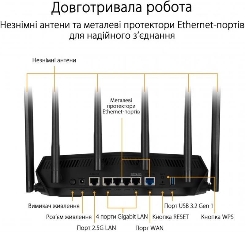 Бездротовий маршрутизатор Asus TUF Gaming AX6000 (TUF-AX6000) (90IG07X0-MO3C00)