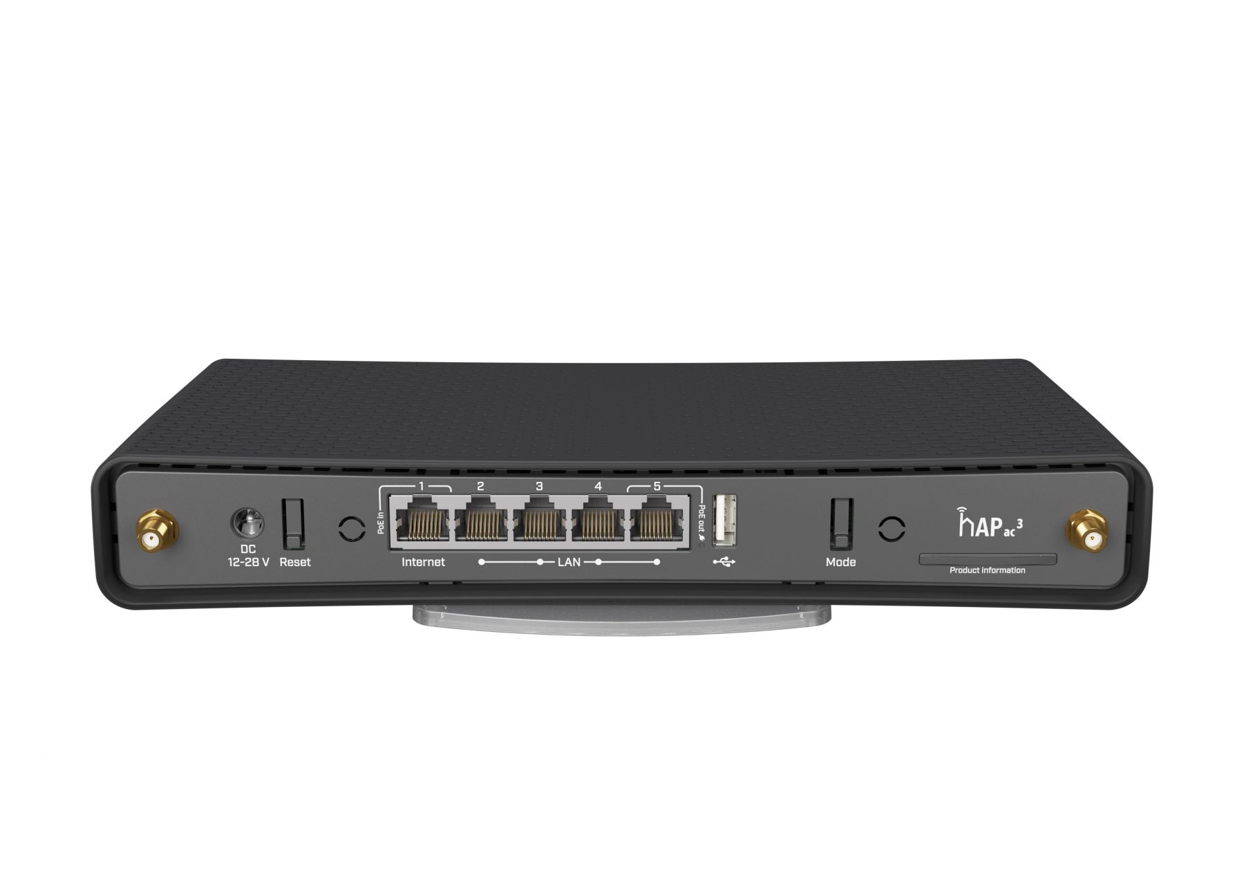 Завдяки 5 портів Gigabit Ethernet, 256 МБ оперативної пам’яті і чотирьохядерному процесору hAP ac3 може задовольнити запити навіть самих великих і вимогливих домашніх господарств. Завдяки підтримці PoE він може харчуватися або харчуватися від інших пристроїв. Пристрій обладнаний 128 мегабайтами пам’яті NAND і повнорозмірним портом USB, який можна використовувати для додавання додаткового сховища. Новий корпус дозволяє встановлювати пристрій як вертикально, так і горизонтально. Також в комплект входить набір для настінного кріплення.