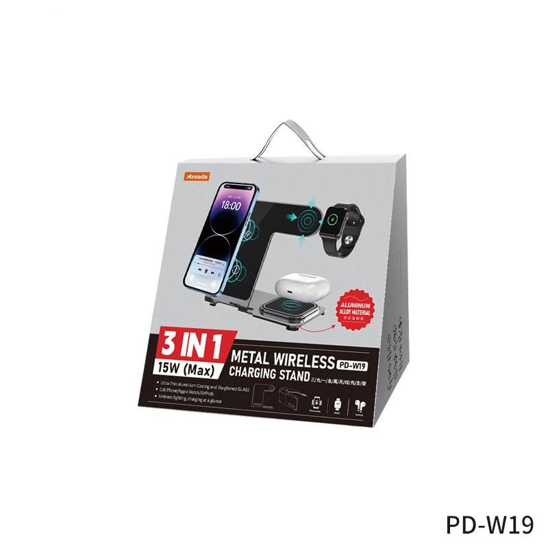Бездротовий зарядний пристрій Proda Azeada Metal PD-W19 15W 3 in 1 Black (PD-W19-BK)