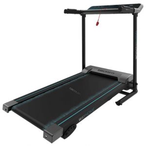 Невелика ходова поверхня 100х40 см і система горизонтального складання дозволяють зручно зберігати бігову доріжку після використання, займаючи лише 20 см заввишки.