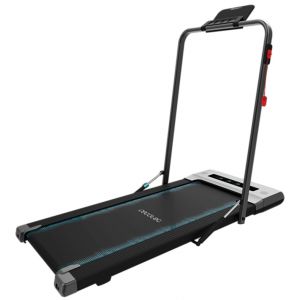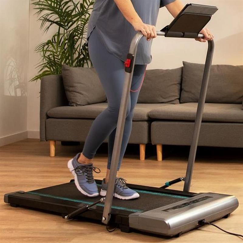 Бігова доріжка оснащена пультом дистанційного керування із вашого зап’ястя та тримачем для планшета, щоб усе було під рукою.