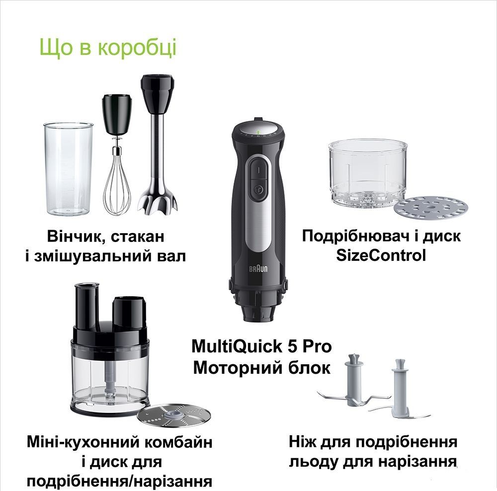 Комплектація:насадка подрібнювач 500 мл, кришка-редуктор міні-кухонний комбайн для насадки подрібнювач на 500 мл, диск тертка/шинкування (тонка), вставка-подрібнювач з диском SizeControl, подрібнювальний ніж, ніж для колки льоду, вінчик, мірний стакан 600 мл