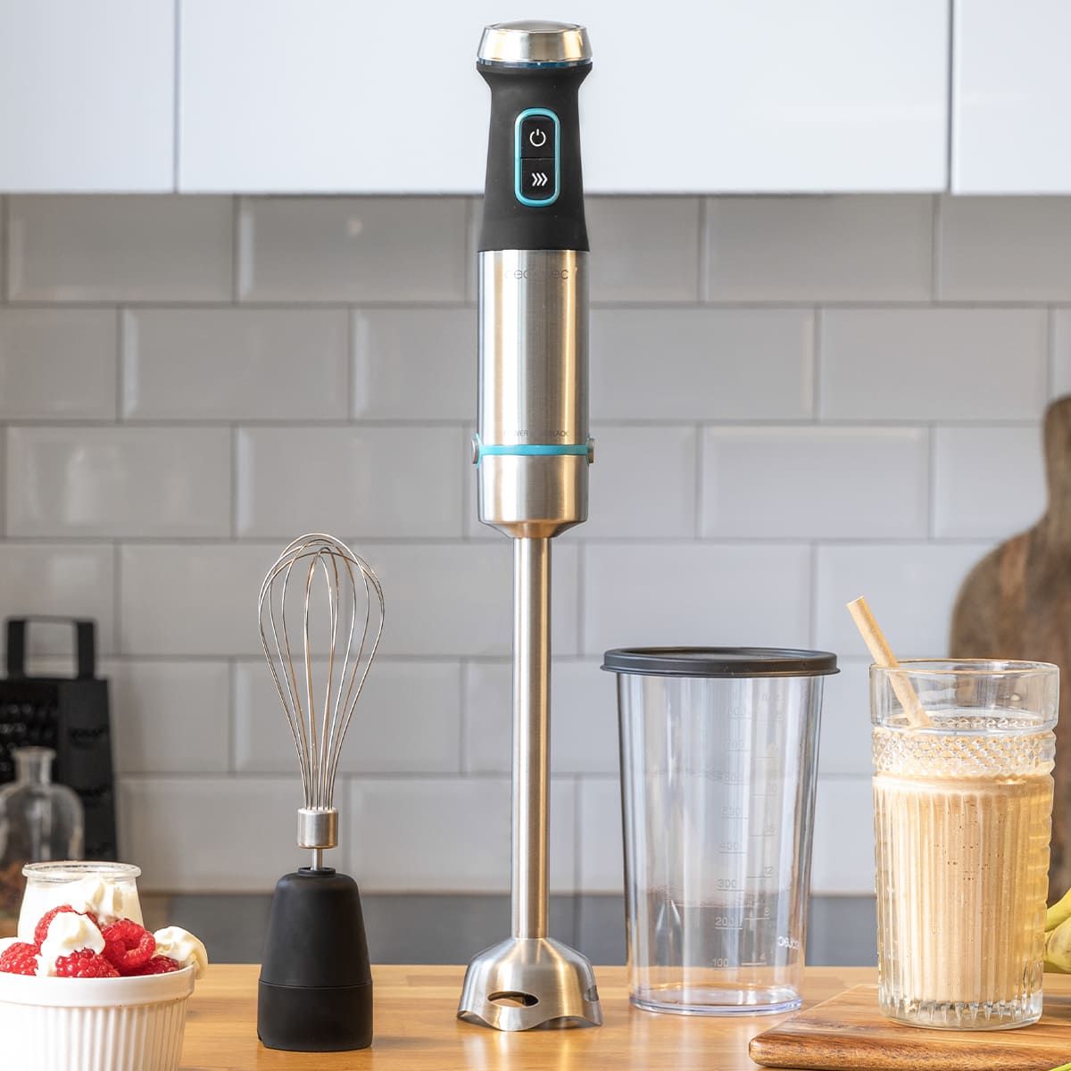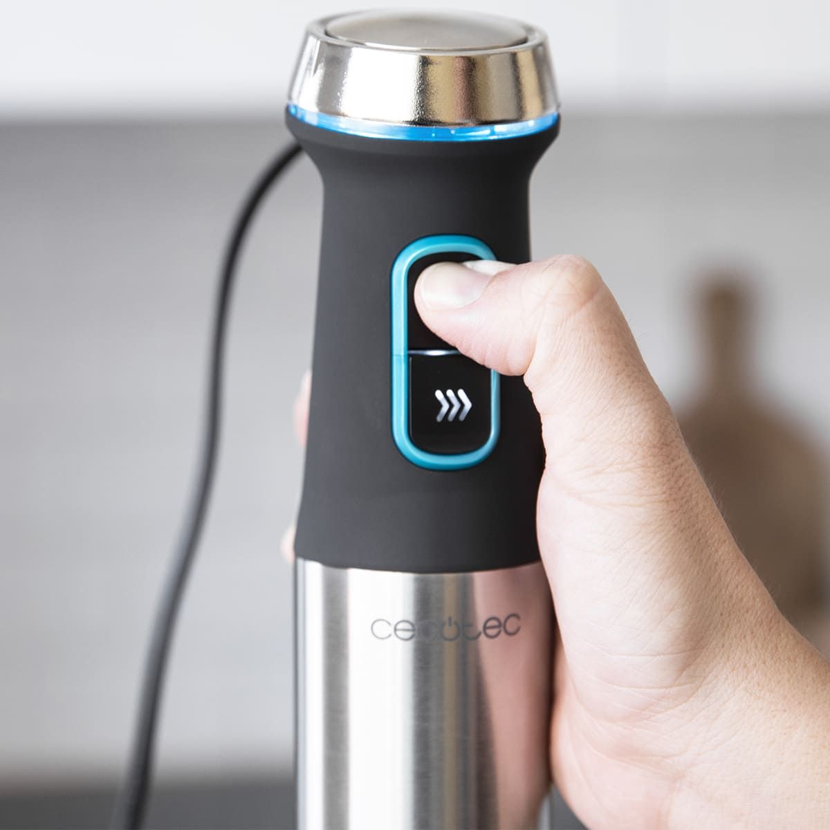 Завдяки селектору регульованої швидкості та функції Turbo занурювальний блендер CECOTEC з максимальною точністю адаптується до потреб для будь-якого рецепту. Низькі швидкості ідеально підходять для більш м’яких продуктів або збивання яєць, а максимальна швидкість та функція «Турбо» — для змішування твердих продуктів. Крім того, блендер оснащений світлодіодними світильниками з інтуїтивно зрозумілим та привабливим дизайном.