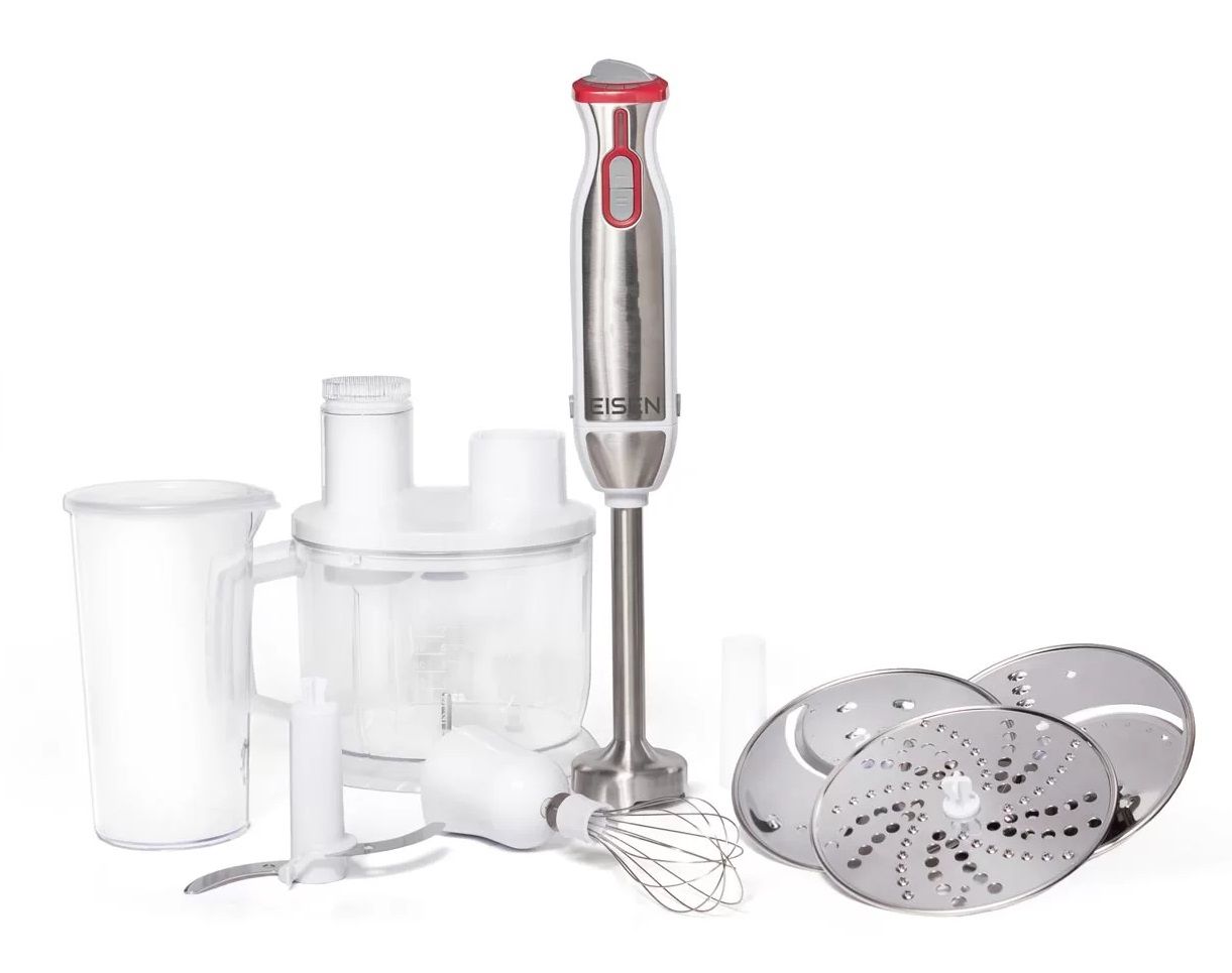 Блендерний набір EISEN EBSS-001W допоможе впоратися з безліччю кулінарних завдань при приготуванні страв в домашніх умовах. Комплект оснащений великою кількістю насадок, що спрощують роботу на кухні, а саме:
