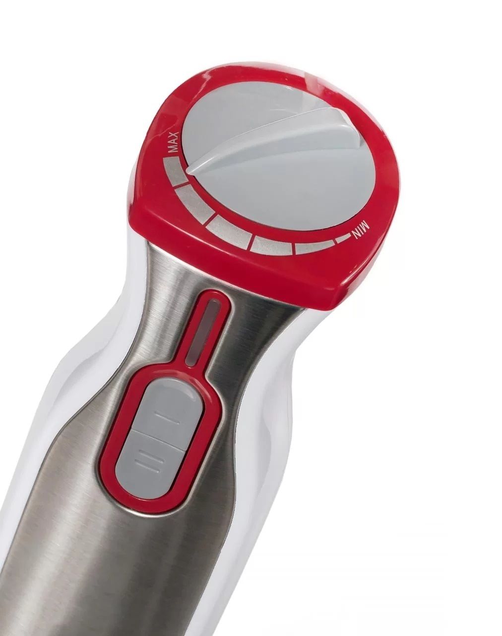 Ручка блендера зручно й надійно розміщується в руці, завдяки своїй ергономічній формі та особливому покриттю Soft-touch. Пристрій не ковзає при використанні, тому керувати ним тривалий час зовсім нескладно.