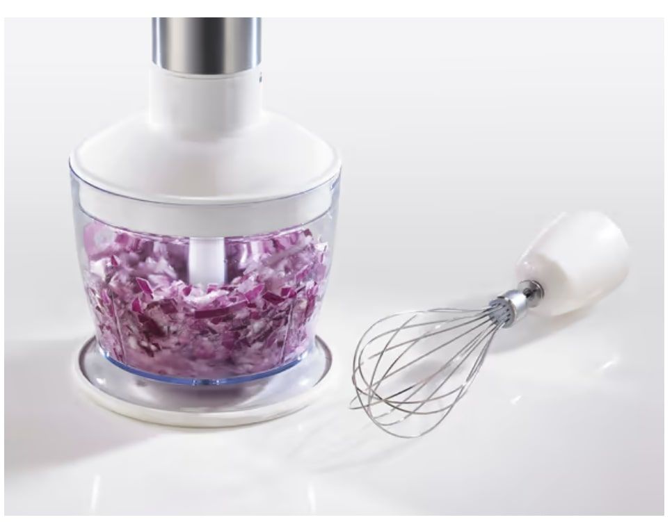 Комплектація:блендер, подрібнювач із чашею 500 мл, склянка 500 мл, вінчик, підставка, інструкція