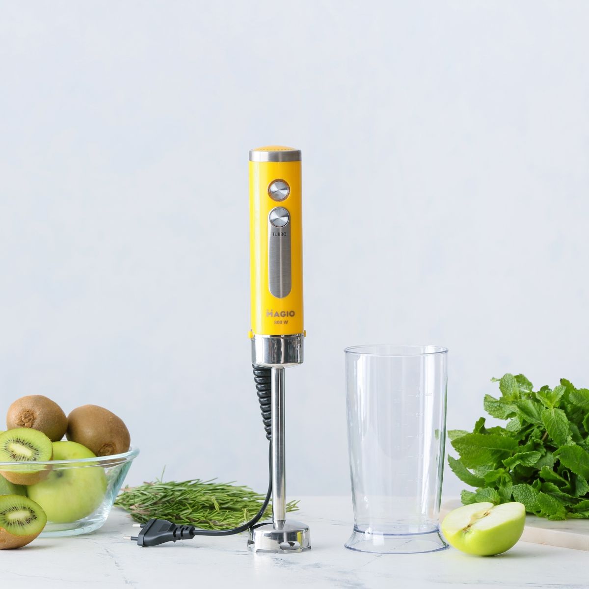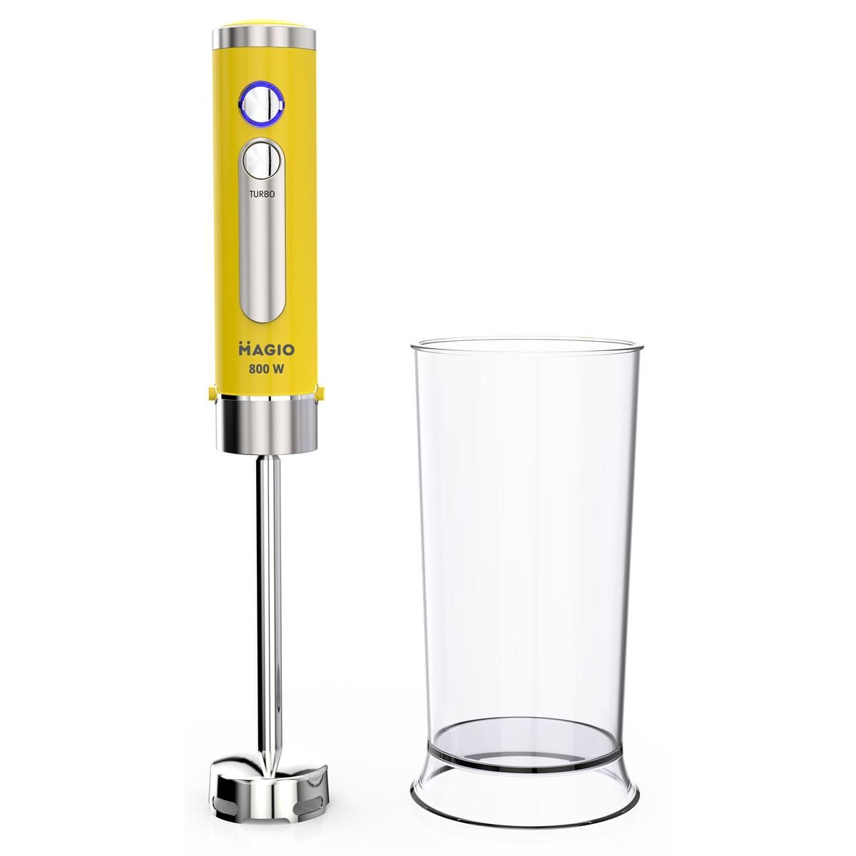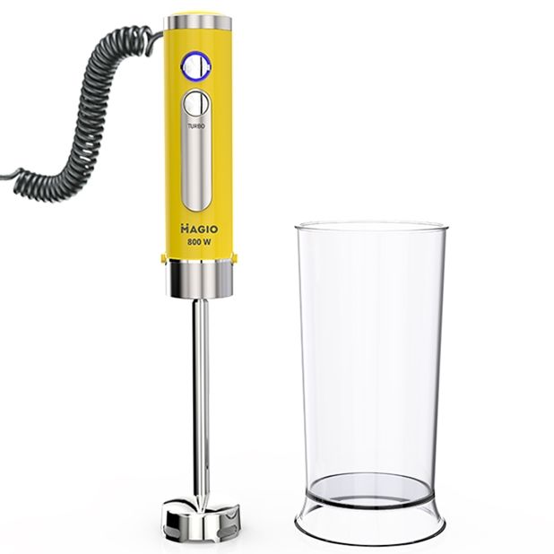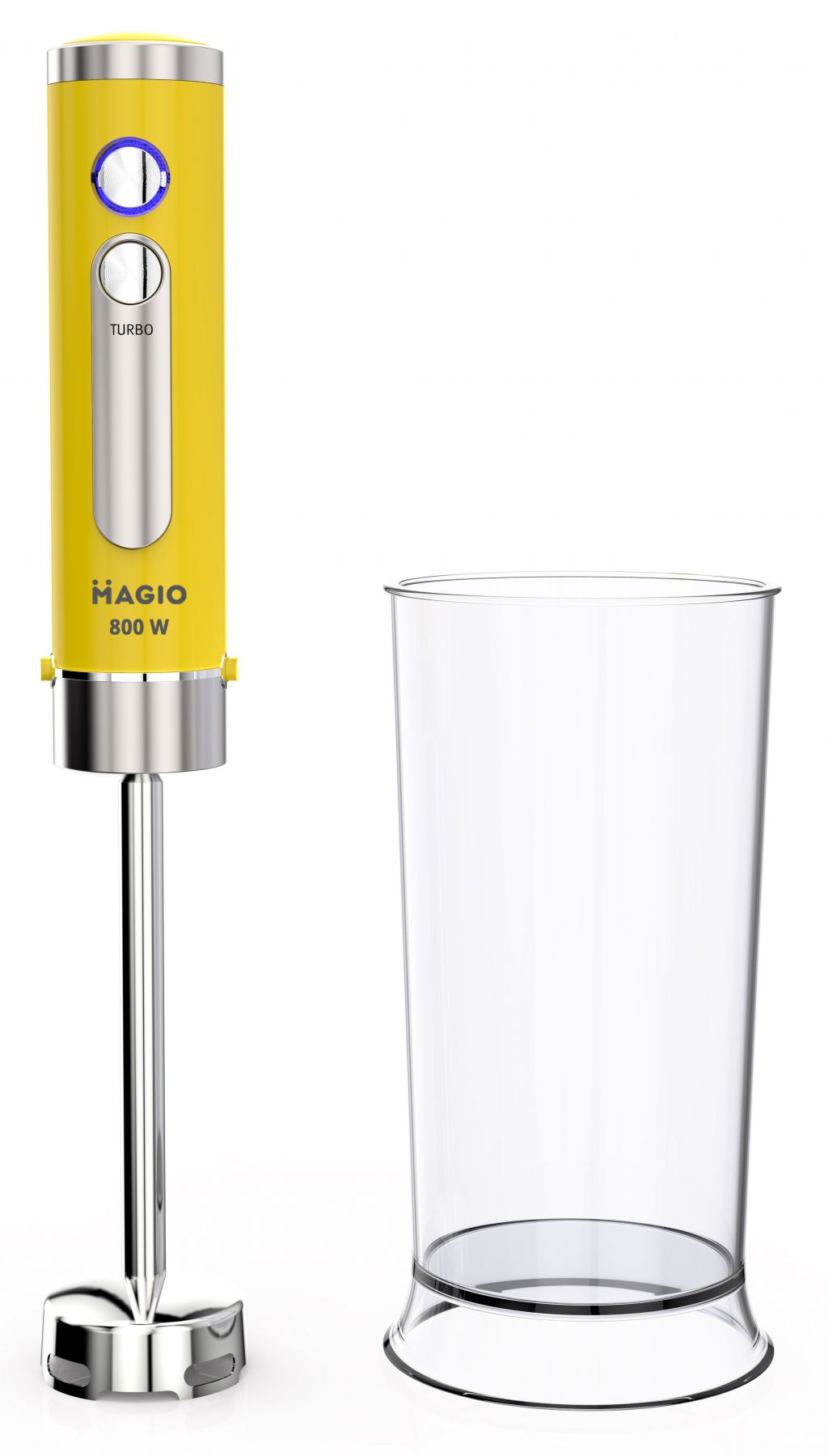 Блендер MG-646 дозволить різноманітнити ваше меню та приготувати новий кулінарний шедевр. Потужність блендера становить 800 Вт, що забезпечує безшумну ефективну роботу протягом тривалого часу. Занурювальна частина виконанана з нержавіючої сталі – запорука стійкості до зношування і довговічності. Блендер може працювати на 13 швидкостях, що плавно перемикаються. Перемикач знаходиться на держаку приладу, що дуже зручно. До комплекту входить пластиковий мірний стакан. Ці властивості в поєднанні з компактним дизайном роблять блендер незамінним помічником на вашій кухні.