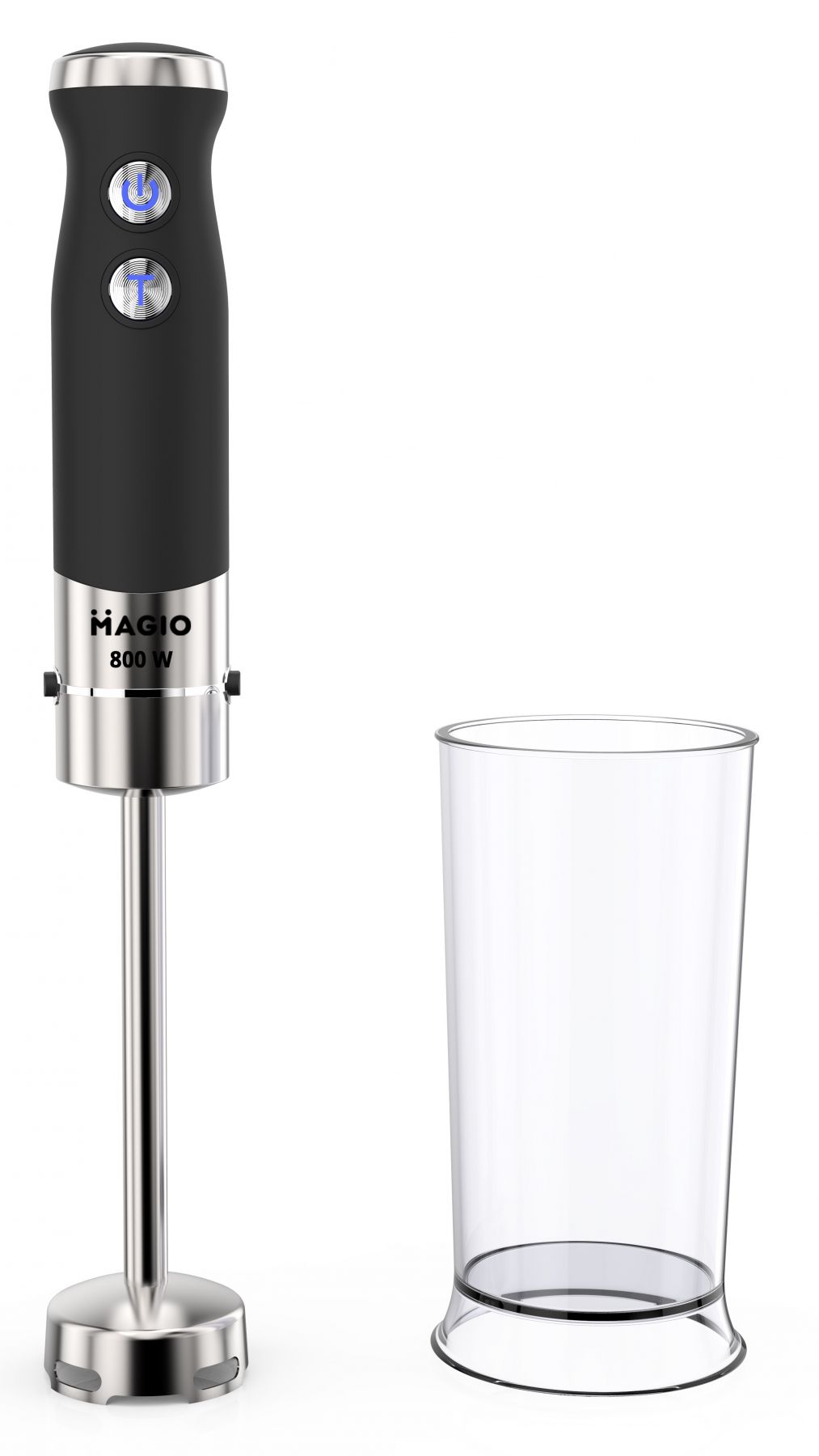 Блендер MG-647 дозволить різноманітнити ваше меню та приготувати новий кулінарний шедевр. Потужність блендера становить 800 Вт, що забезпечує безшумну ефективну роботу протягом тривалого часу. Занурювальна частина виконанана з нержавіючої сталі – запорука стійкості до зношування і довговічності. Блендер може працювати на 13 швидкостях, що плавно перемикаються. Перемикач знаходиться на держаку приладу, що дуже зручно. До комплекту входить пластиковий мірний стакан. Ці властивості в поєднанні з компактним дизайном роблять блендер незамінним помічником на вашій кухні.