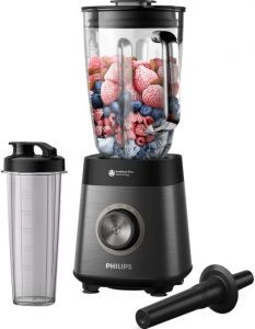 Перетворіть тверді інгредієнти, як-от заморожені фрукти та горіхи, на смачні смузі за допомогою блендера Philips серії 5000 із двигуном потужністю 1200 Вт. Автоматичне очищення одним натисканням робить процес легким від початку до кінця.